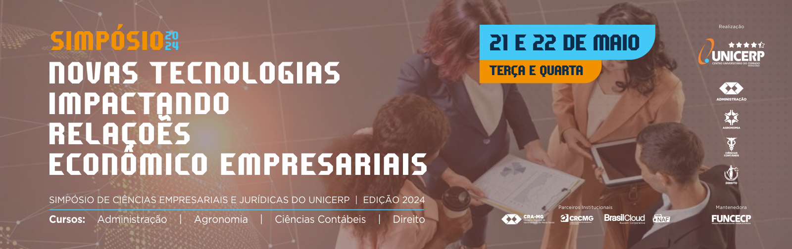 Simpósio de Ciências Empresariais e Jurídicas do UNICERPP, edição 2024, vem com a temática "Novas tecnologias impactando relações econômico empresariais", tem como objetivo promover a integração e a interdisciplinaridade como foco na realidade local, buscando despertar aos participantes a importância do comportamento proativo dos futuros profissionais. Os impactos com as novas tecnologias e a mutação comportamental da sociedade, tem afetado sobremaneira a forma como os futuros profissionais deverão se portar neste novo mercado de trabalho.