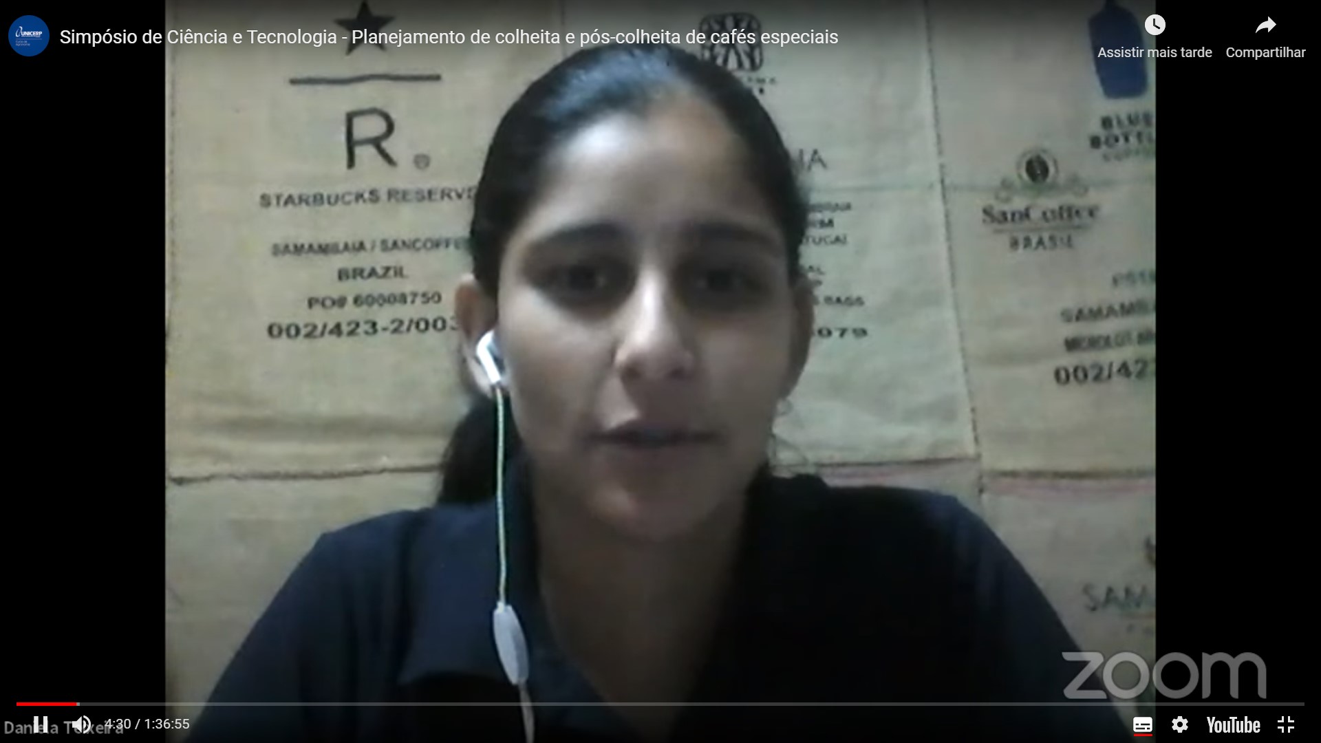 Durante o Seminário de Ciência e Tecnologia 2021, ocorrido nos dias 11 e 12 de maio, foi abordado o tema “Planejamento de colheita e pós-colheita para a produção de cafés especiais”, ministrada pela palestrante Daniela Edel Teixeira. A Engenheira Agrônoma formada pela Universidade Federal de Lavras e é responsável pela coordenação dos setores de Qualidade, Sustentabilidade, Agrícola e Equipamentos da Fazenda Samambaia, situada em Santo Antônio do Amparo-MG, Campo das Vertentes.