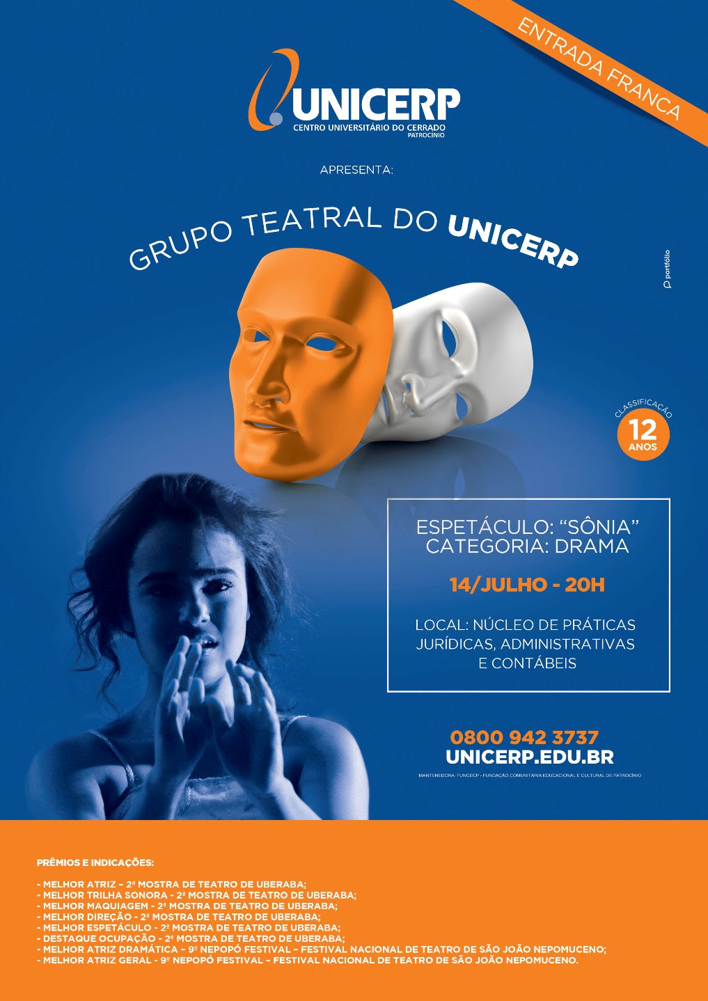 O Grupo Teatral do UNICERP apresentará “Sônia”, drama baseado na obra de Nelson Rodrigues. A encenação acontecerá quinta-feira, dia 14, às 20h, no Auditório II do Núcleo de Práticas Jurídicas, Administrativas e Contábeis do Centro Universitário do Cerrado Patrocínio.