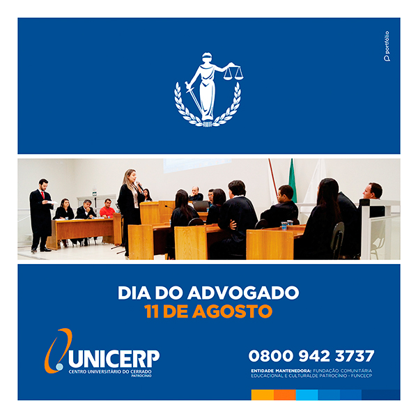 Nós do UNICERP desejamos a todos os advogados e especialmente aos nossos professores e alunos do Curso de Direito um feliz Dia do Advogado.