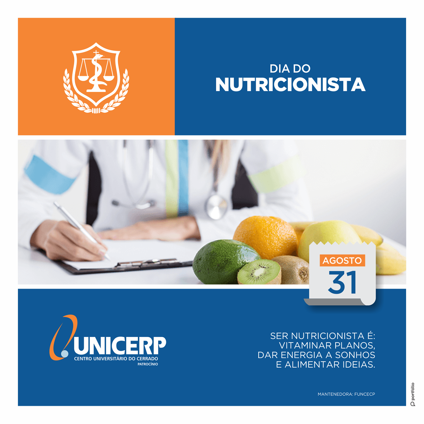 Nós do UNICERP desejamos a todos os nutricionistas, especialmente aos nossos professores e alunos do Curso de Nutrição, um feliz Dia do Nutricionista.