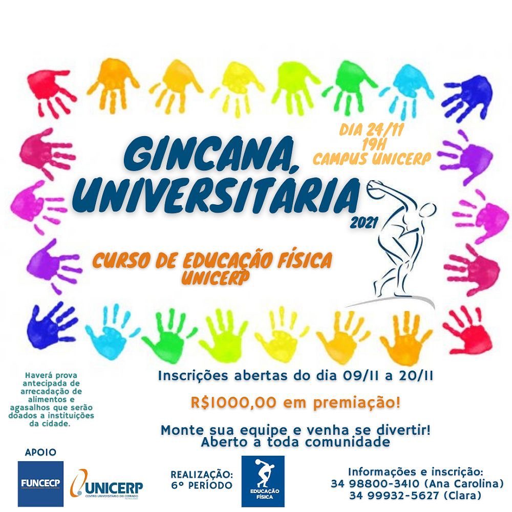 O curso de Educação Física realiza no dia 24 de novembro a Gincana Universitária, no campus do UNICERP. A organização é da turma do 6º período, sob a supervisão da Profa. Ma. Marília Rocha Magalhães.