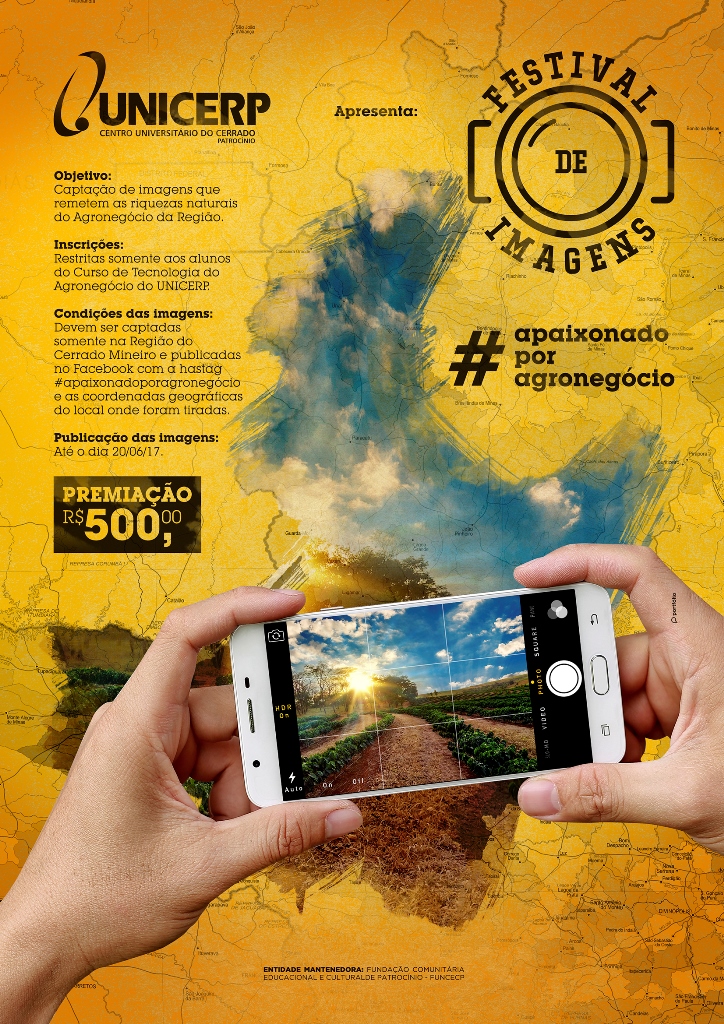 O curso de Agronegócio do UNICERP realiza neste mês o 1º Festival de Imagens – Apaixonado por Agronegócio. Os inscritos devem captar imagens que evidenciem as riquezas naturais da região, podendo ser de qualquer etapa da produção que envolva a agricultura – como plantação, colheita e pós-colheita. A participação é exclusiva aos alunos do curso de Tecnologia em Agronegócio do Centro Universitário do Cerrado Patrocínio.