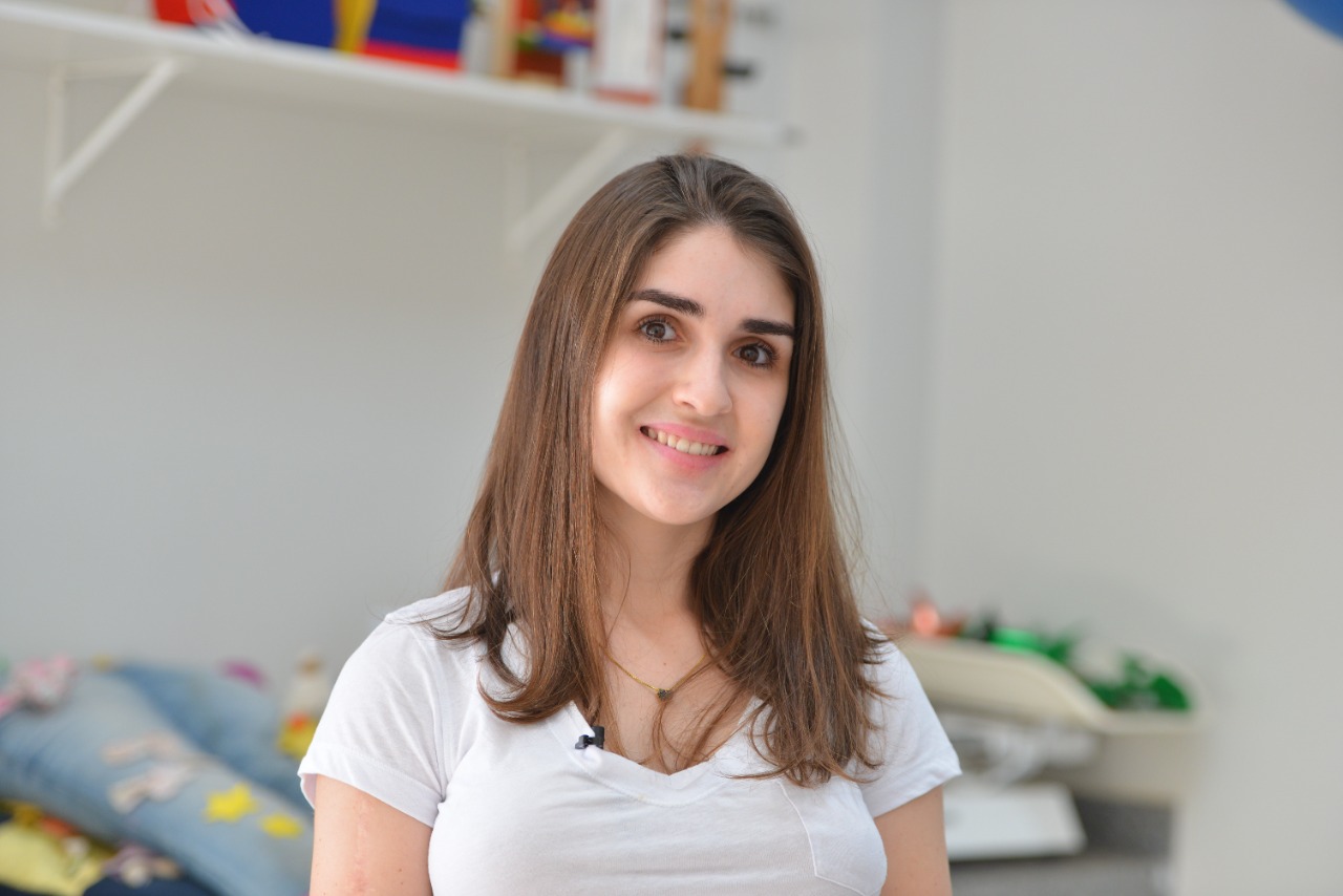 A aluna do curso de Enfermagem do UNICERP, Gyovanna Diniz, celebra sobre a importância do aleitamento materno.