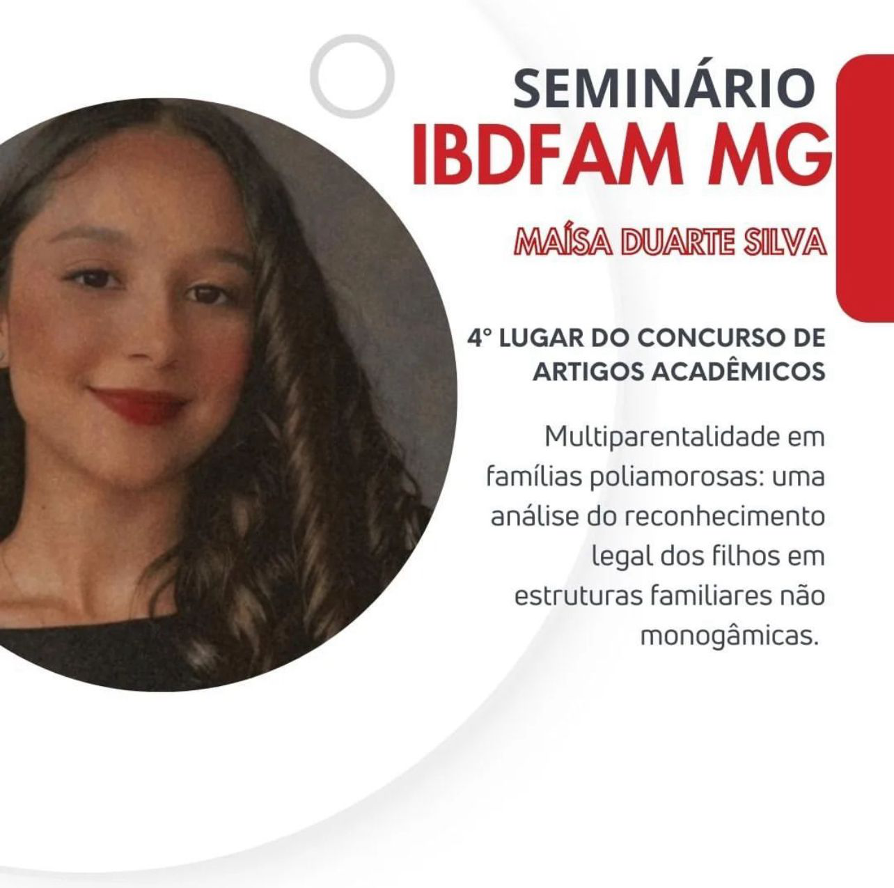 Nossa aluna do curso de Direito, Maísa Duarte Silva, será uma das palestrantes durante o Seminário do Instituto Brasileiro de Direito da Família.