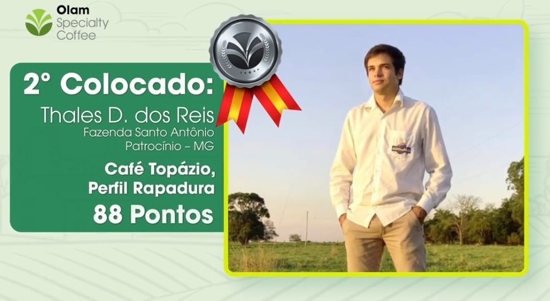 Saiu nesta semana o resultado do 1º Concurso Olam de Cafés Especiais, e nosso aluno do 10º período de Agronomia, Thales Donizete dos Reis ficou em 2º lugar com seu Café Topázio, Perfil Rapadura, com 88 pontos. Foram mais de 200 lotes de cafés e participantes de todo o Brasil.
