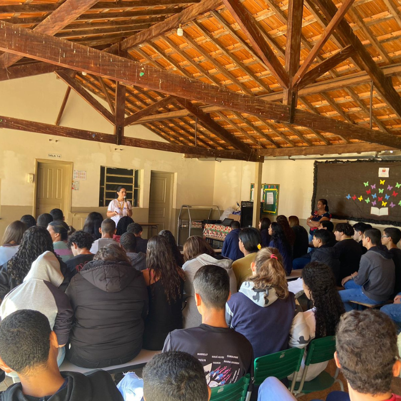 Esta segunda-feira (29) foi dia dos alunos da Escola Estadual Coronel Elmiro Alves do Nascimento receberem a caravana do Unicerp nas Escolas, projeto inovador que busca transformar a vida dos jovens estudantes através de uma roda de conversa bastante interativa.