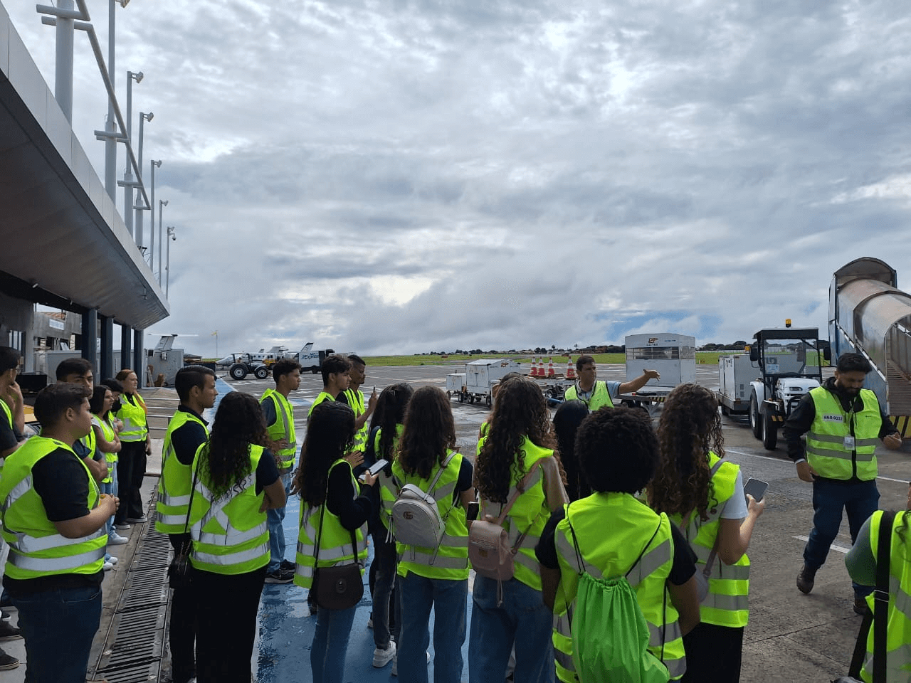 Os alunos puderam acompanhar também o tráfego aéreo de seis aeronaves, particulares e comerciais, durante a visita, o que permitiu o acompanhamento ao vivo da logística e procedimentos de segurança.