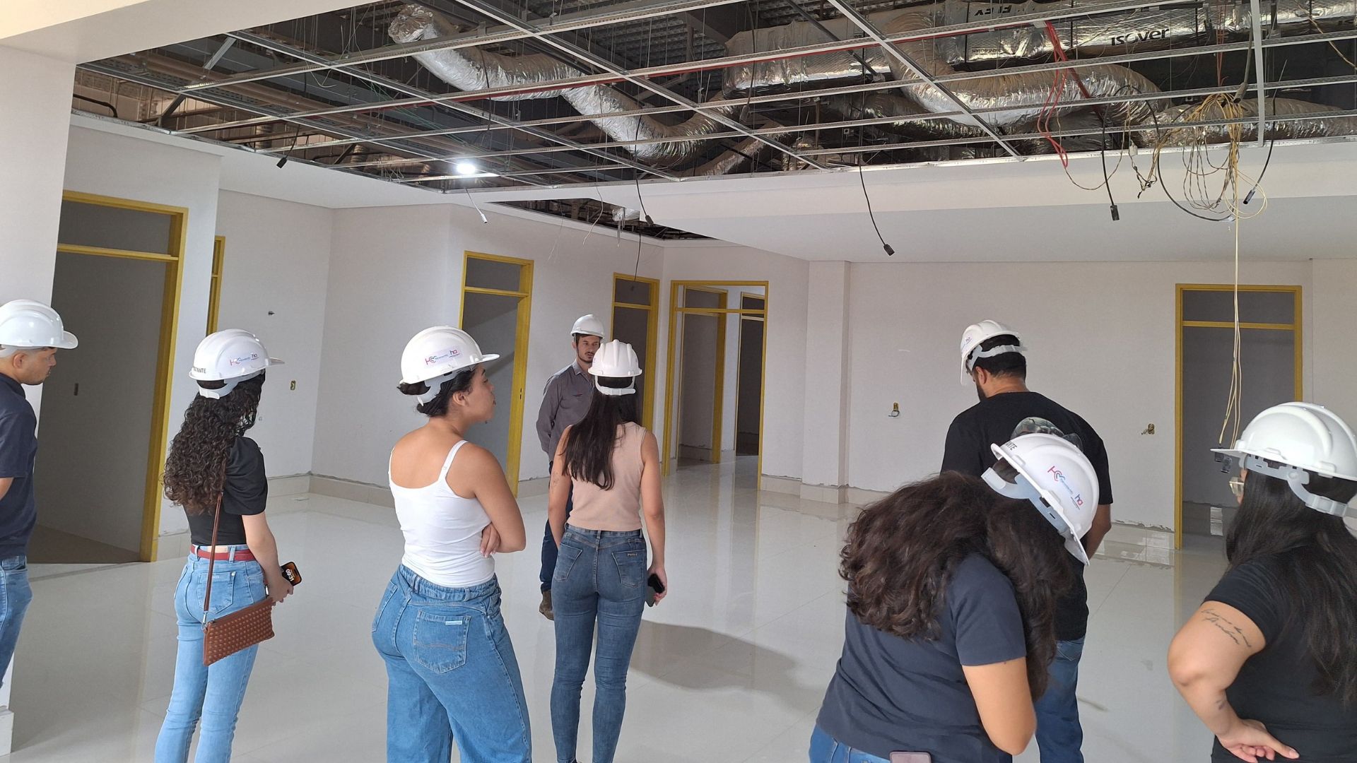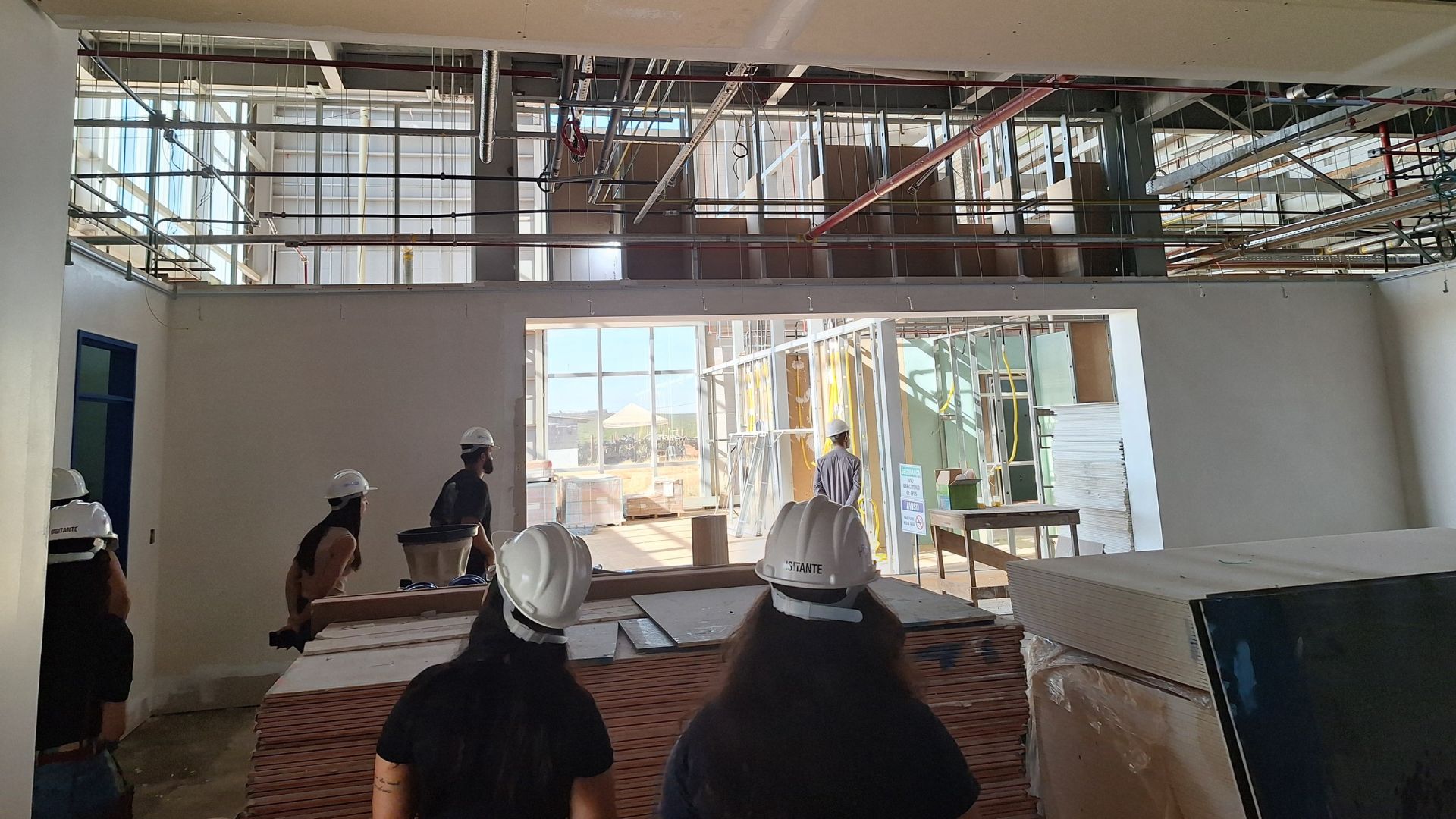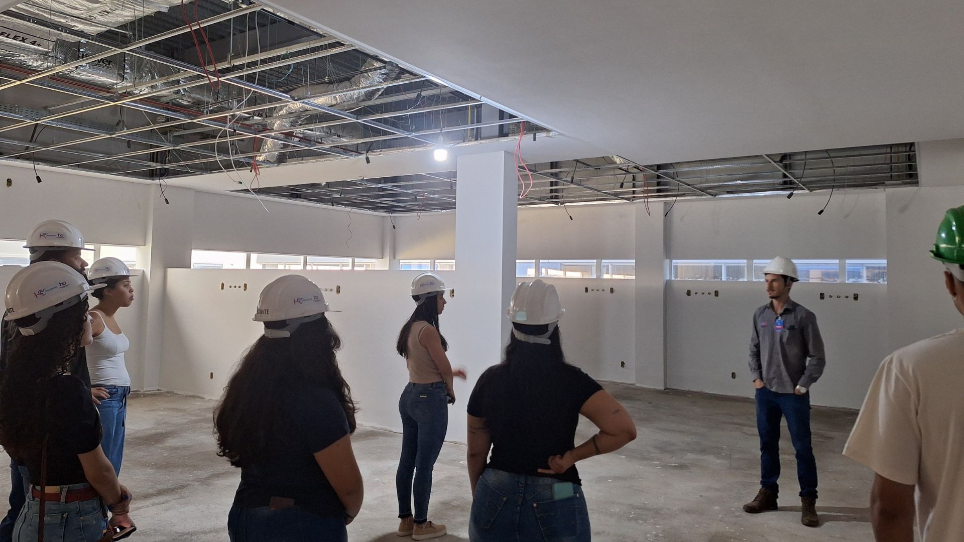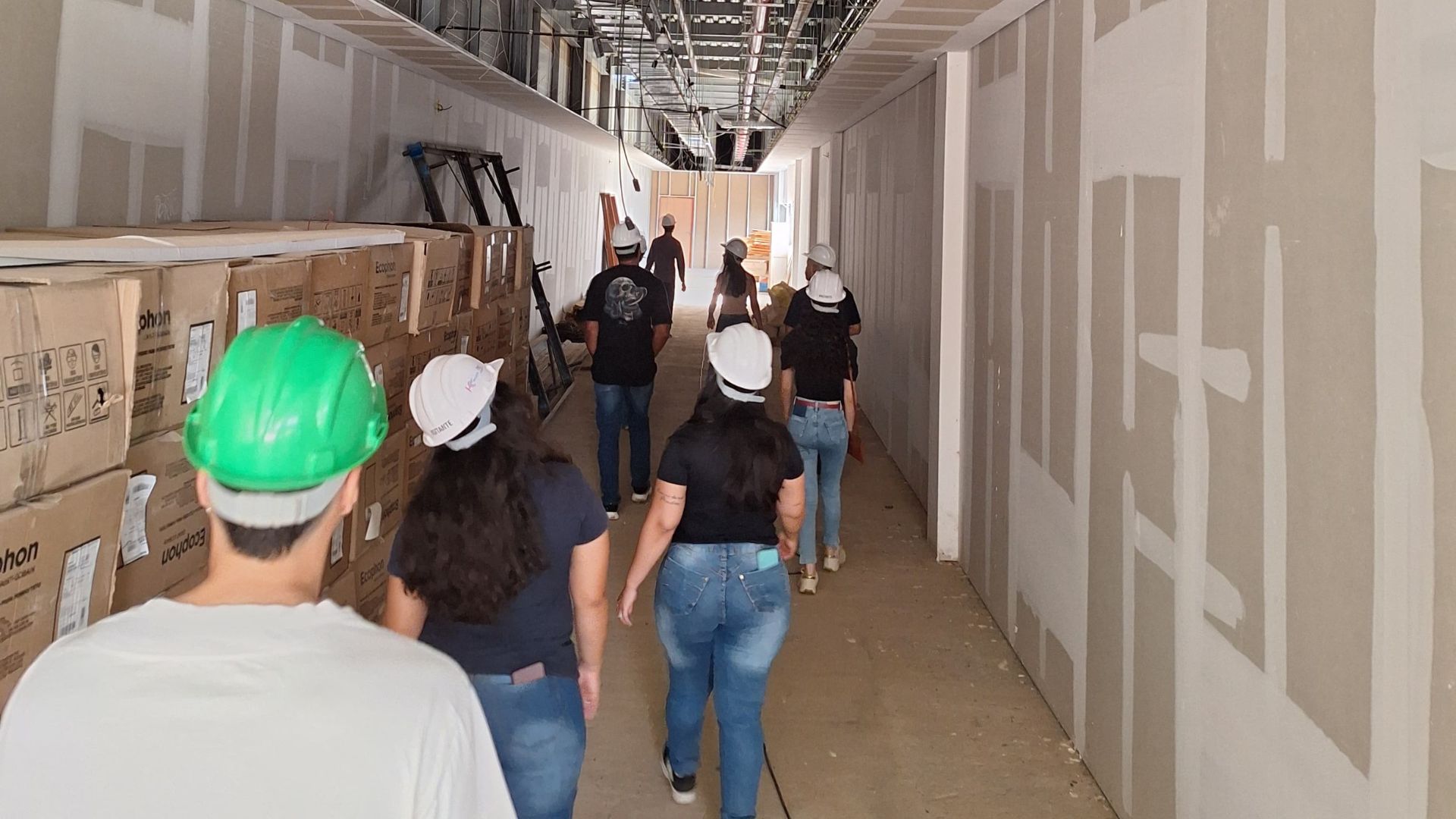 Recebidos pelo engenheiro responsável, Mateus Mallon Ferreira, os estudantes vivenciaram uma experiência de grande aprendizado técnico. Eles puderam conhecer as técnicas construtivas e os materiais atualmente utilizados, específicos e recomendados para obras hospitalares. Também tiveram a oportunidade de analisar os projetos em planta de cada setor — em construção e ainda a construir.