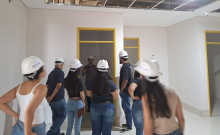 Recebidos pelo engenheiro responsável, Mateus Mallon Ferreira, os estudantes vivenciaram uma experiência de grande aprendizado técnico. Eles puderam conhecer as técnicas construtivas e os materiais atualmente utilizados, específicos e recomendados para obras hospitalares. Também tiveram a oportunidade de analisar os projetos em planta de cada setor — em construção e ainda a construir.