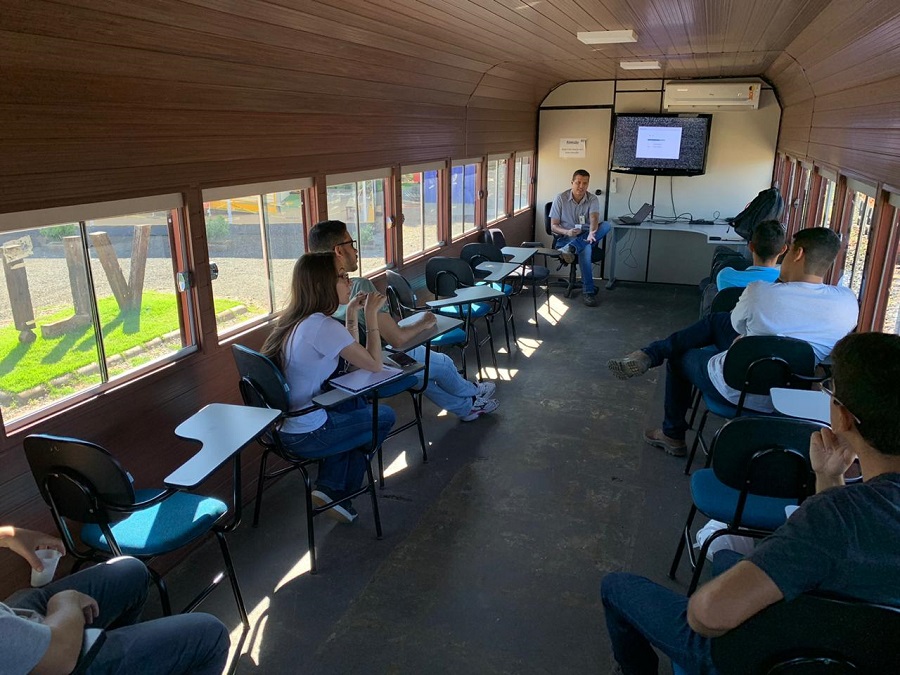 Os alunos puderam presenciar o funcionamento da interação da geotecnia com o modal ferroviário, a funcionalidade da rotina de uma supervisão de manutenção de via permanente, assim como a geometria de via com utilização de régua de superelevação e os tipos de dormentes e fixação.