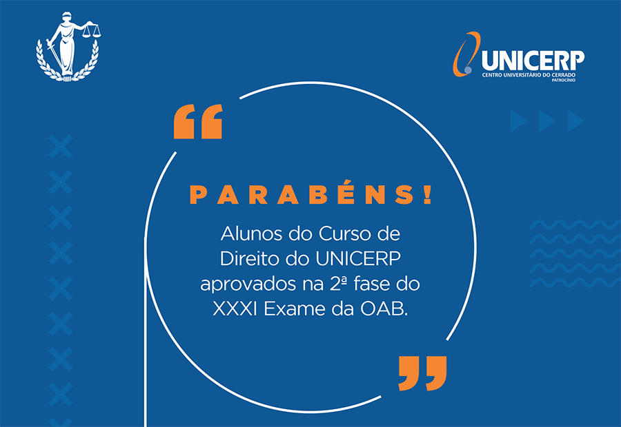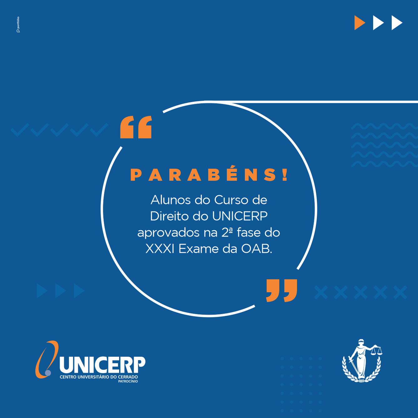 Parabéns aos alunos do curso de Direito do UNICERP aprovados na 2ª fase do XXXI Exame da OAB.