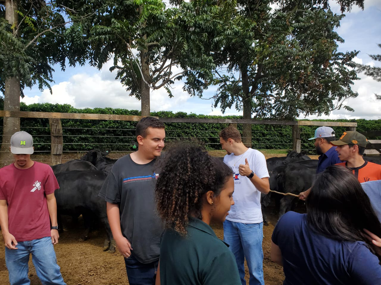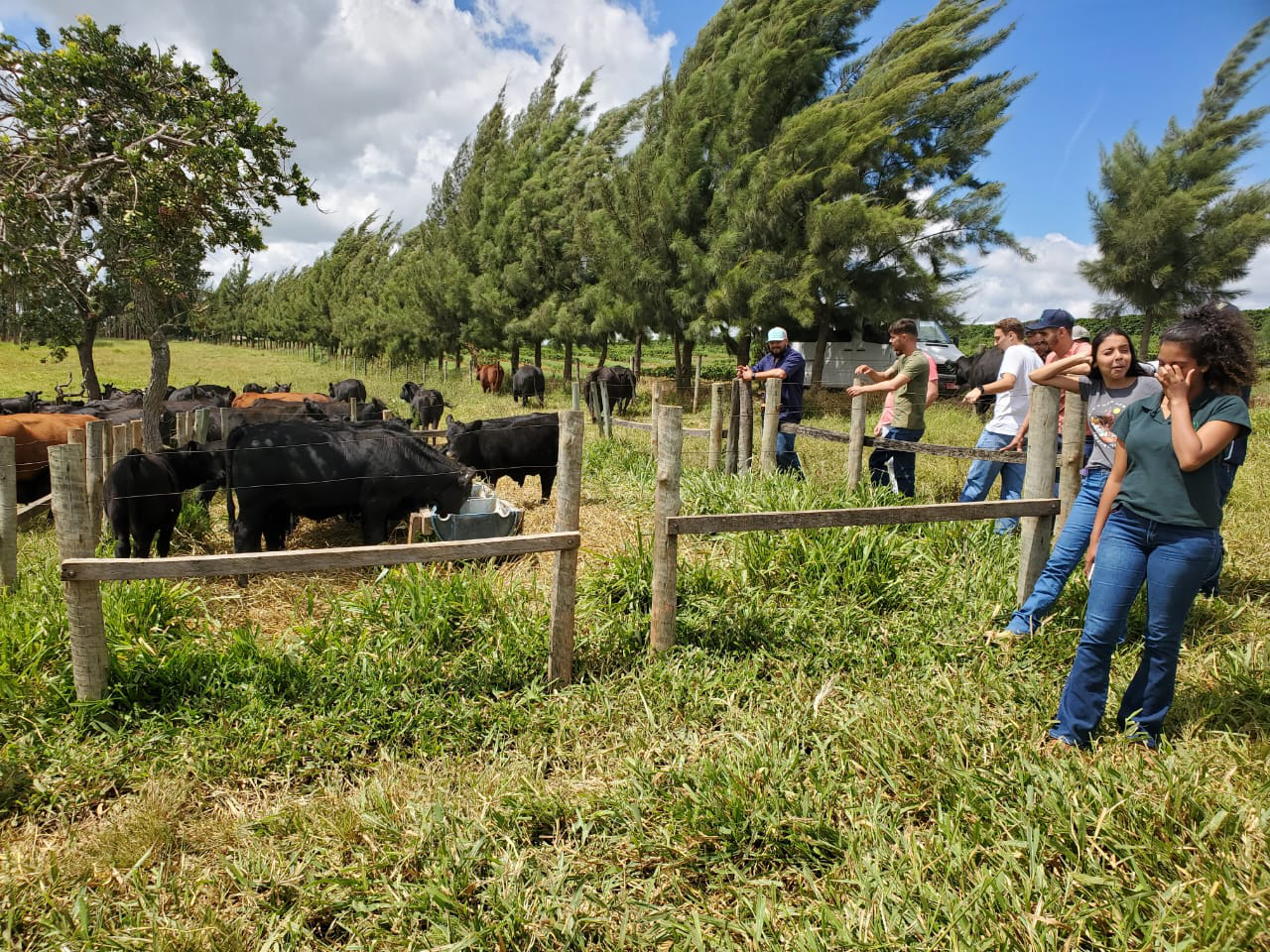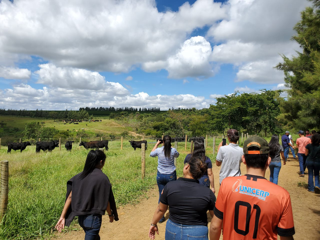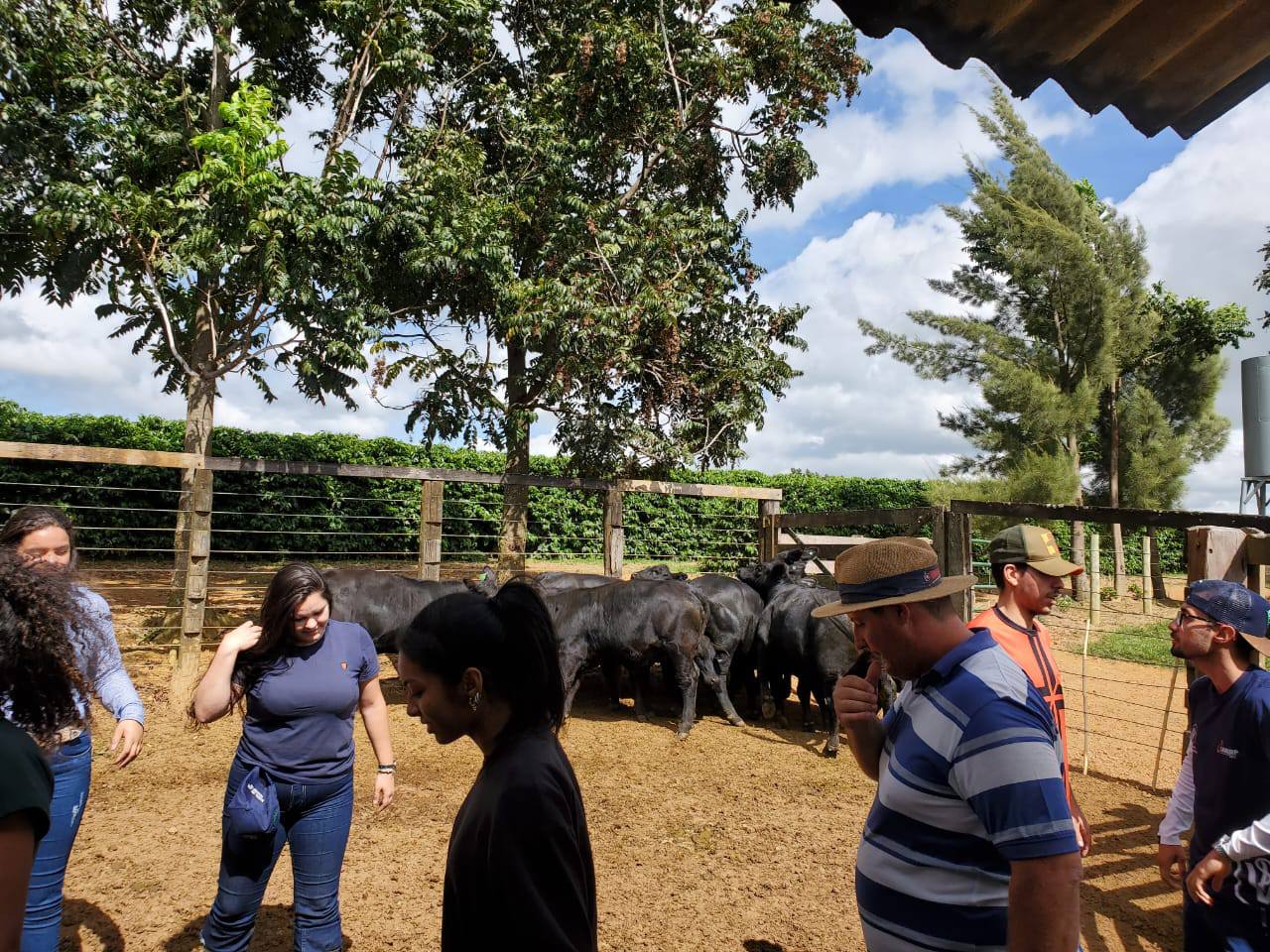 Os alunos do curso de Medicina Veterinária do UNICERP realizaram no último sábado (25-03-2023) uma visita técnica a Fazenda Cachoeira do Campo, localizada no município de Serra do Salitre. Os discentes, que estão cursando a disciplina de Bovinocultura de Corte, puderam conhecer um pouco mais dos 20 anos de seleção da raça Angus, Brangus e Ultra Black, sendo possível identificar com a visita a característica de cada raça, seu potencial de produção, precocidade e principalmente a adaptação e rusticidade dos animais criados em regime de pasto. O plantel e composto por animais puros de origem, onde se realiza um processo de seleção por meio de modernas técnicas de reprodução e manejo como a Inseminação Artificial em Tempo Fixo (IATF), Fecundação in vitro (FIV), aspiração folicular, acasalamentos direcionados, participação em provas de ganho de peso, avaliação de carcaça entre outros. O rebanho é composto por 150 animais puros de origens entre machos e fêmeas das raças Angus, Brangus e Ultra Black criados em regime de pasto buscando potencializar a principal característica da fazenda, animais rústicos que se adaptem as condições de clima brasileiro.