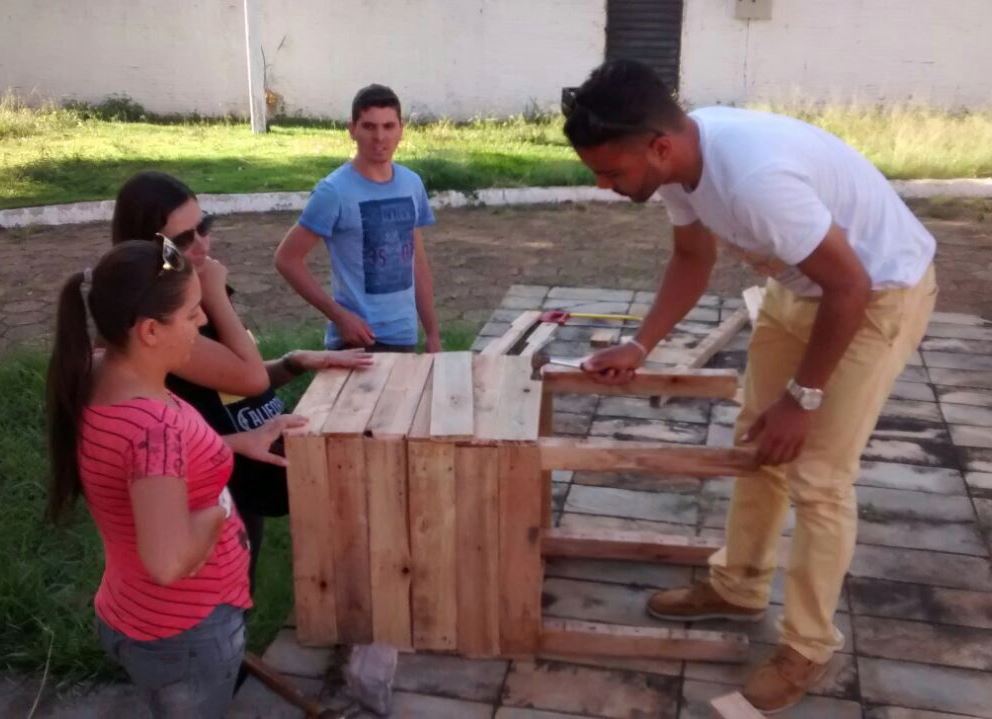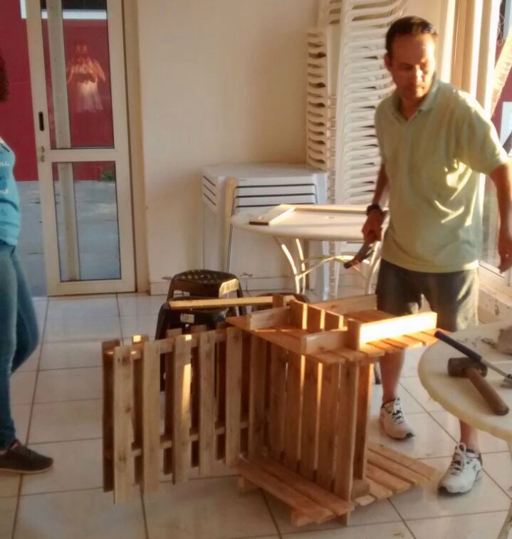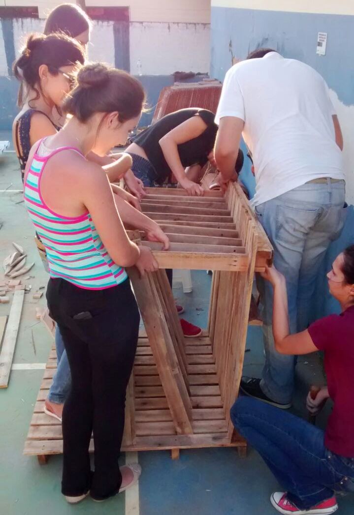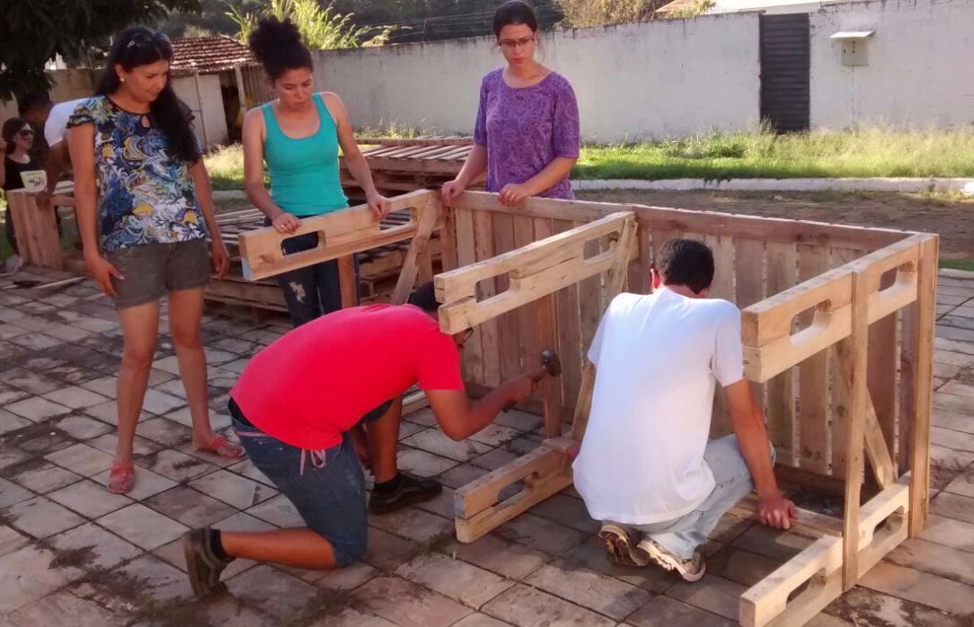 Segundo o Prof. Bordignon, “os pallets, por serem material de descarte e quase nunca padronizados, permitem aos participantes da oficina trabalhar com o sentido do reaproveitamento, abrangendo o tema da sustentabilidade”.