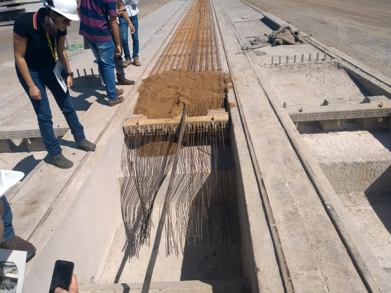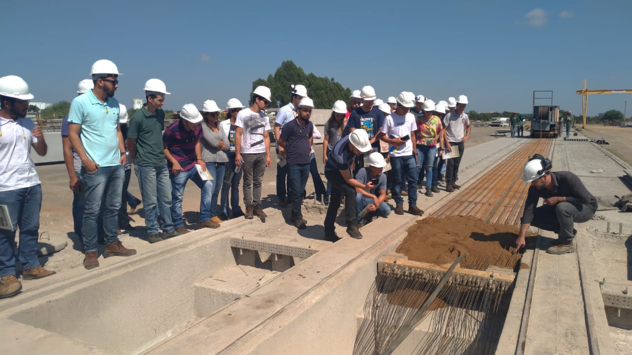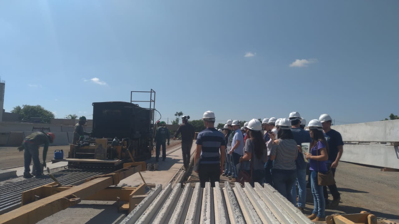 A visita foi amplamente satisfatória, pois os alunos e professores tiveram acesso a todas as etapas na produção de elementos pré-fabricados de concreto. Destacaram-se a precisão das fôrmas metálicas, inserção das barras de armadura passiva e ativa, e protensão das estruturas de concreto. Foi possível acompanhar a concretagem de vigotas protendidas na pista de protensão da empresa, dosagem e produção de concreto, e fabricação de blocos estruturais de concreto. Finalmente, foi apresentado o laboratório de controle tecnológico do concreto da empresa, com rompimento de corpos de prova.