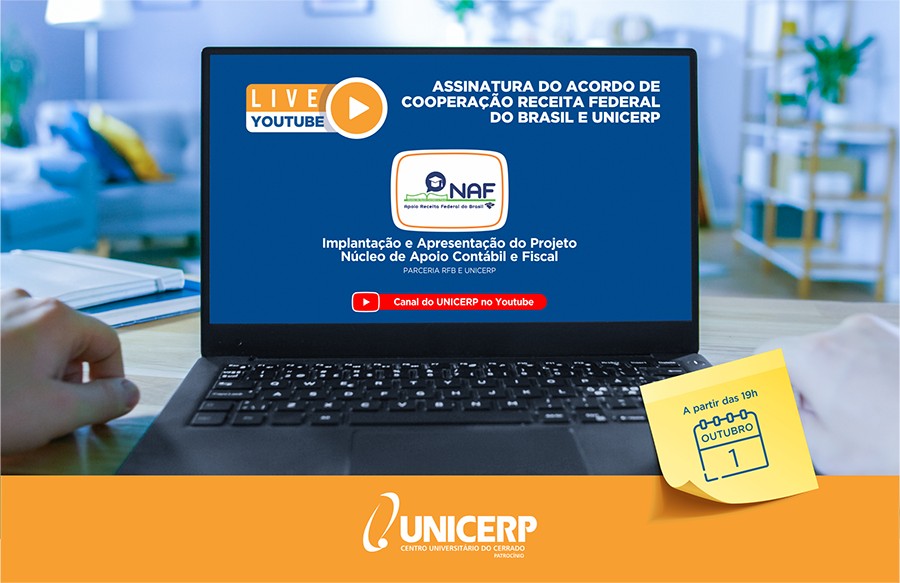 O UNICERP, por meio do curso de Ciências Contábeis, está assinando uma parceria com a Receita Federal do Brasil para a implantação do Núcleo de Apoio Contábil e Fiscal (NAF). Antes agendada para o dia 24 de setembro, a cerimônia de assinatura do Acordo de Cooperação entre as suas partes foi reagendada para o dia 1º de outubro, quinta-feira.