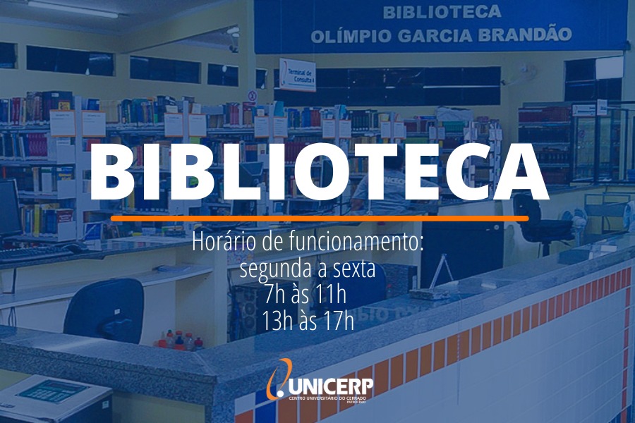 O UNICERP informa que o atendimento e os serviços oferecidos pela Biblioteca terão alterações. O atendimento ocorrerá de segunda a sexta-feira, de 7h às 11h e de 13h às 17h.