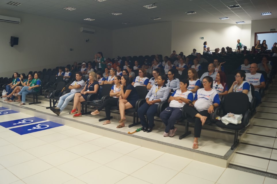 O Prof. Roberto Gonçalves, coordenador do curso de Educação Física do UNICERP, iniciou o evento com um alongamento laboral, a fim de instruir os participantes quanto ao alongamento antes do início da jornada de trabalho. A atividade foi seguida pela palestra “Cuidados laborais e qualidade de vida”, ministrada pela Profª. Dra. Maria de Fátima Pereira, docente dos cursos de Ciências Biológicas e Enfermagem do UNICERP, que tratou sobre a importância dos EPIs (Equipamentos de Proteção Individual).