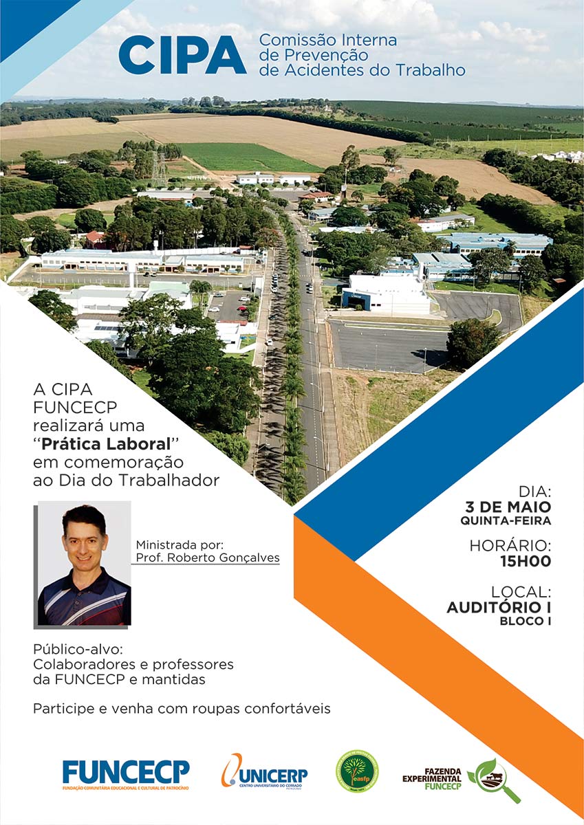 Em comemoração ao Dia do Trabalhador, a CIPA FUNCECP (Comissão Interna de Prevenção de Acidentes do Trabalho) promoverá às 15h da próxima quinta-feira, dia 3, uma "Prática Laboral".