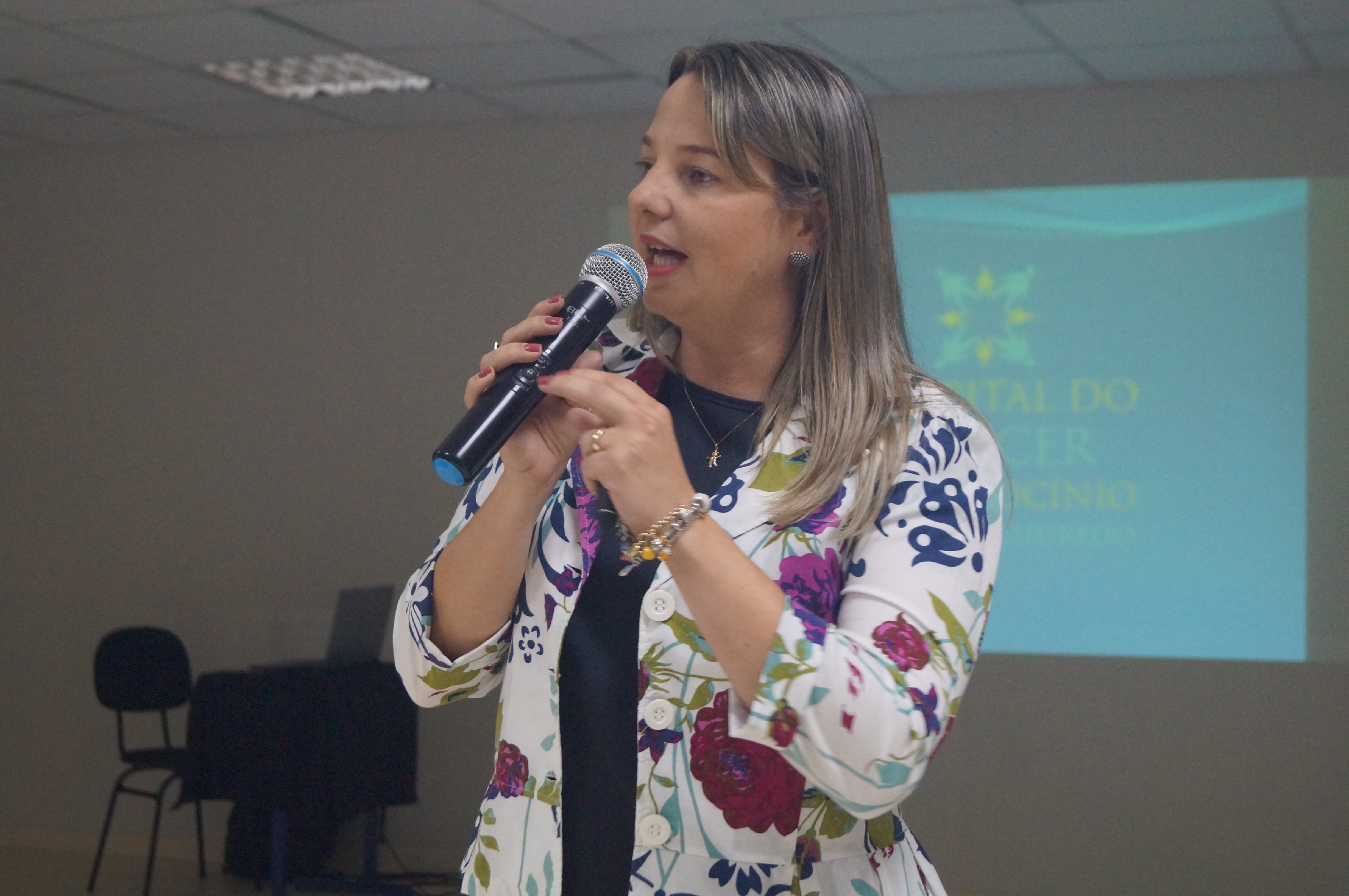 A enfermeira Andréia Ribeiro de Almeida, gestora da unidade ambulatorial do Hospital do Câncer de Patrocínio Dr. José Figueiredo, foi convidada para contar sobre a atuação do HC diariamente no tratamento de pacientes oncológicos.