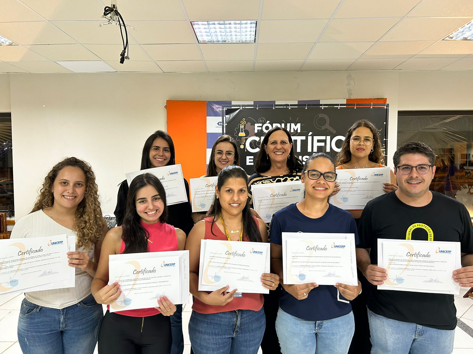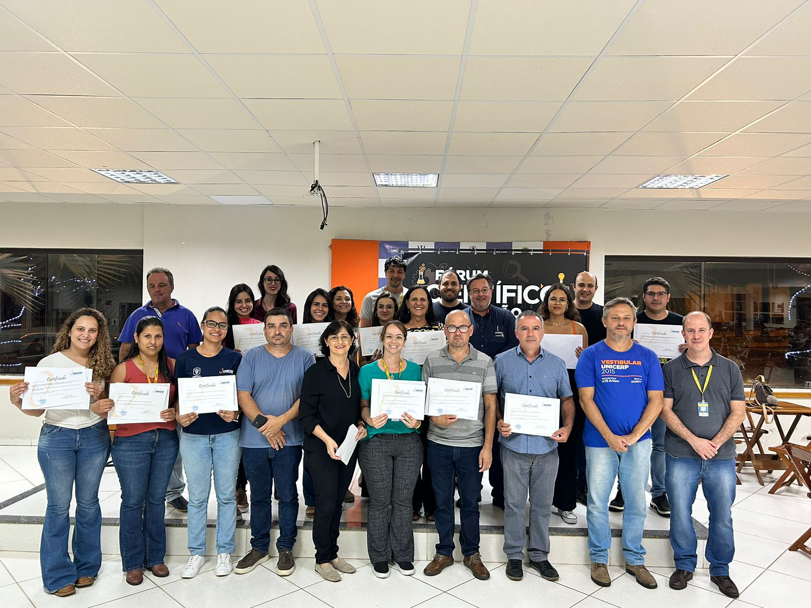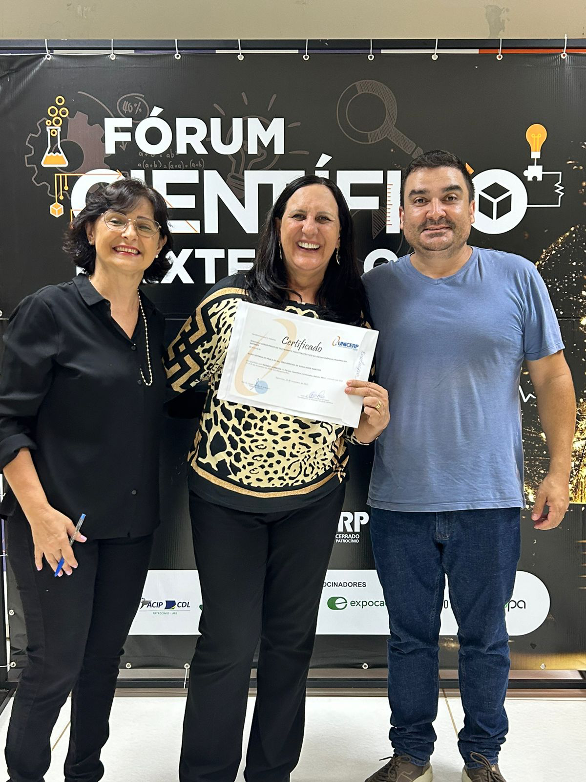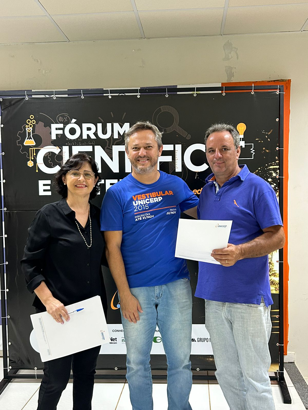 A noite de quarta-feira (29/1) foi marcada pela entrega da Menção Honrosa aos autores dos melhores trabalhos apresentados durante Fórum Científico 2023 do Unicerp. A entrega dos certificados contou com a presença da Profa. Dra. Gisélia Castro, coordenadora de Pesquisa do Unicerp, e do Prof. Ms. e Editor da Revista Rumos, Samir Daura, além do Reitor, Clauber Alcântara, do Pró-Reitor, Aquiles Júnior, e de demais professores e funcionários da instituição.