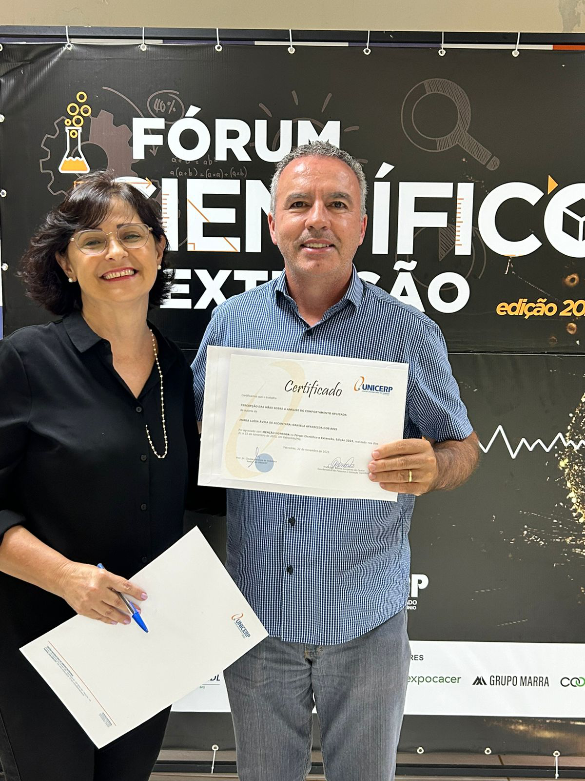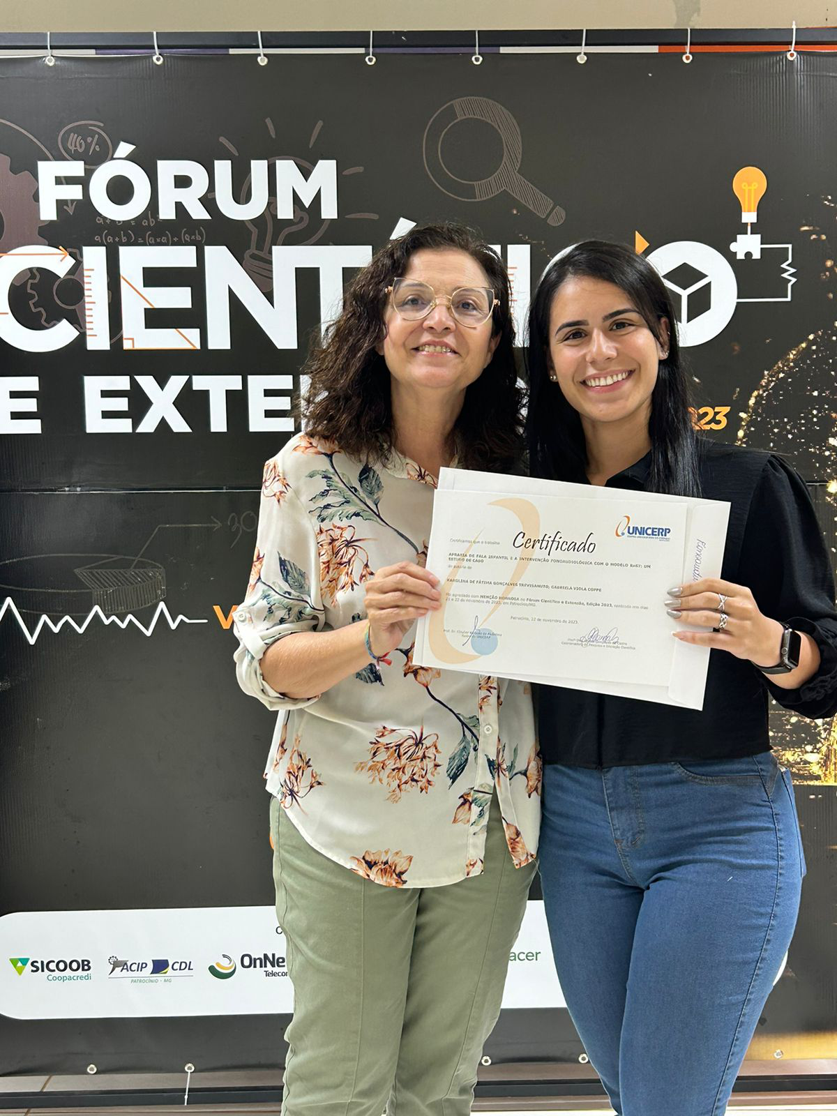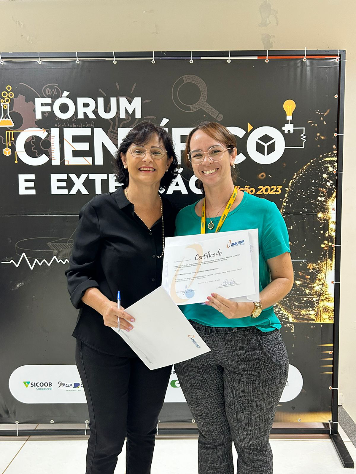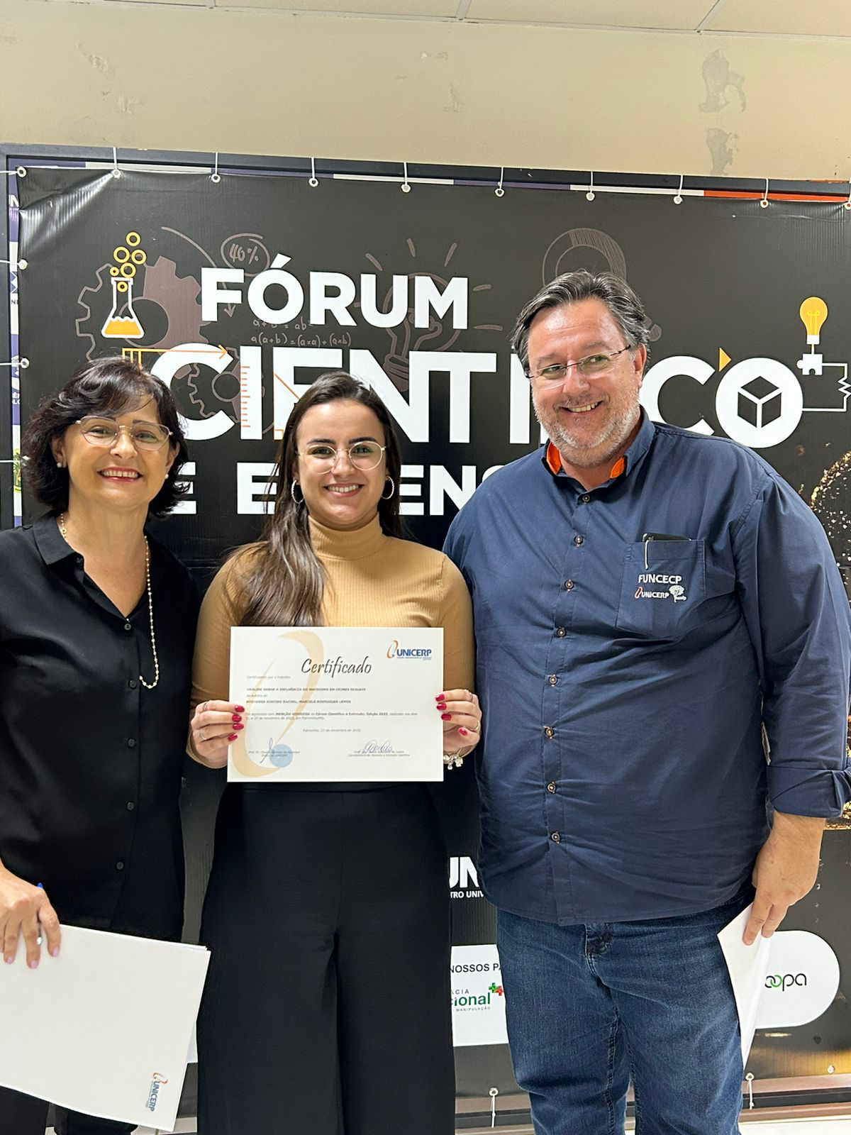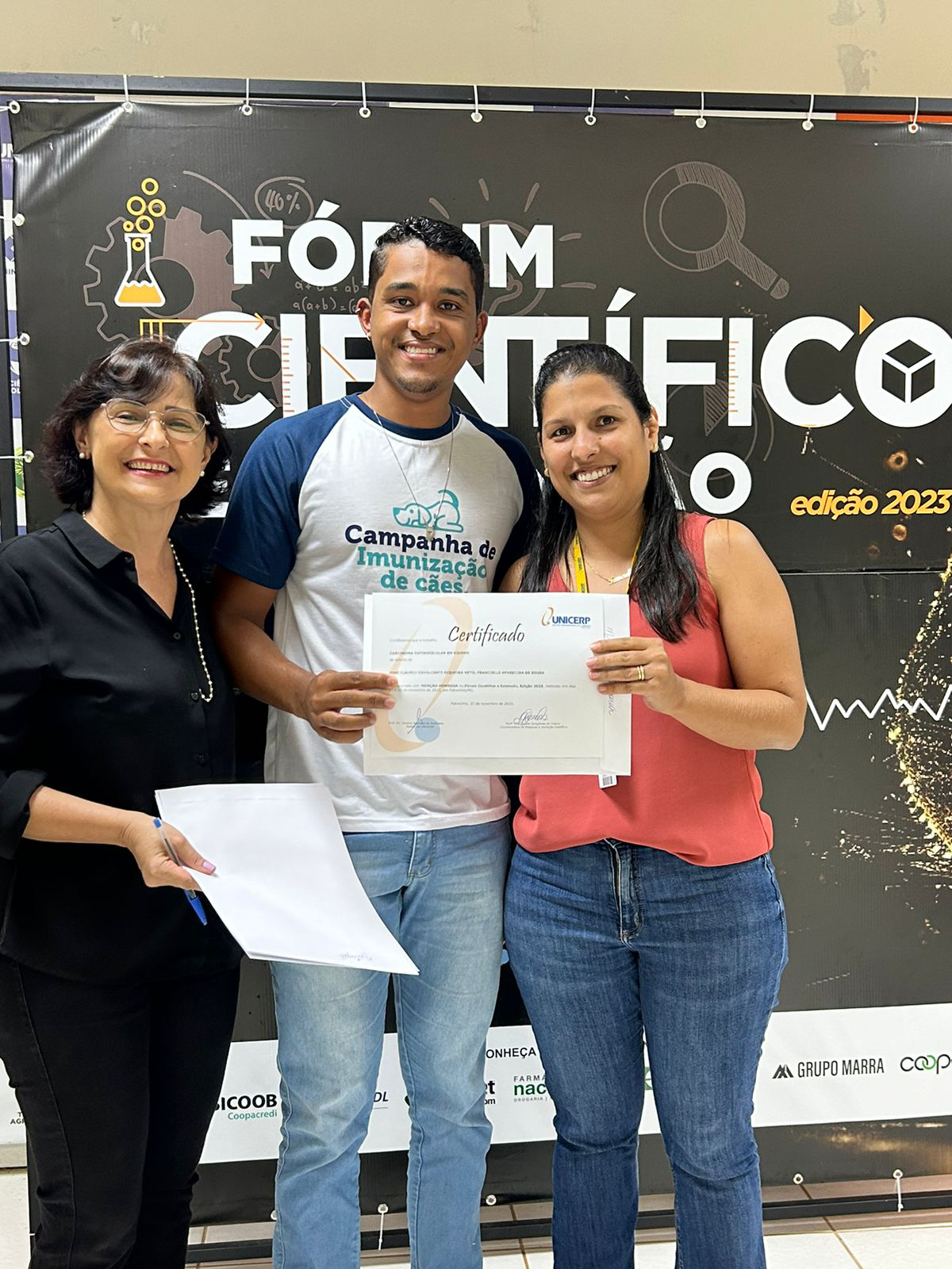 A noite de quarta-feira (29/1) foi marcada pela entrega da Menção Honrosa aos autores dos melhores trabalhos apresentados durante Fórum Científico 2023 do Unicerp. A entrega dos certificados contou com a presença da Profa. Dra. Gisélia Castro, coordenadora de Pesquisa do Unicerp, e do Prof. Ms. e Editor da Revista Rumos, Samir Daura, além do Reitor, Clauber Alcântara, do Pró-Reitor, Aquiles Júnior, e de demais professores e funcionários da instituição.
