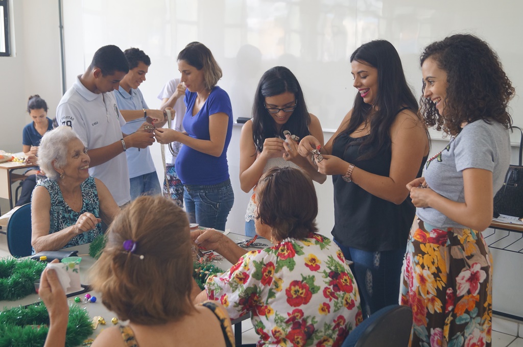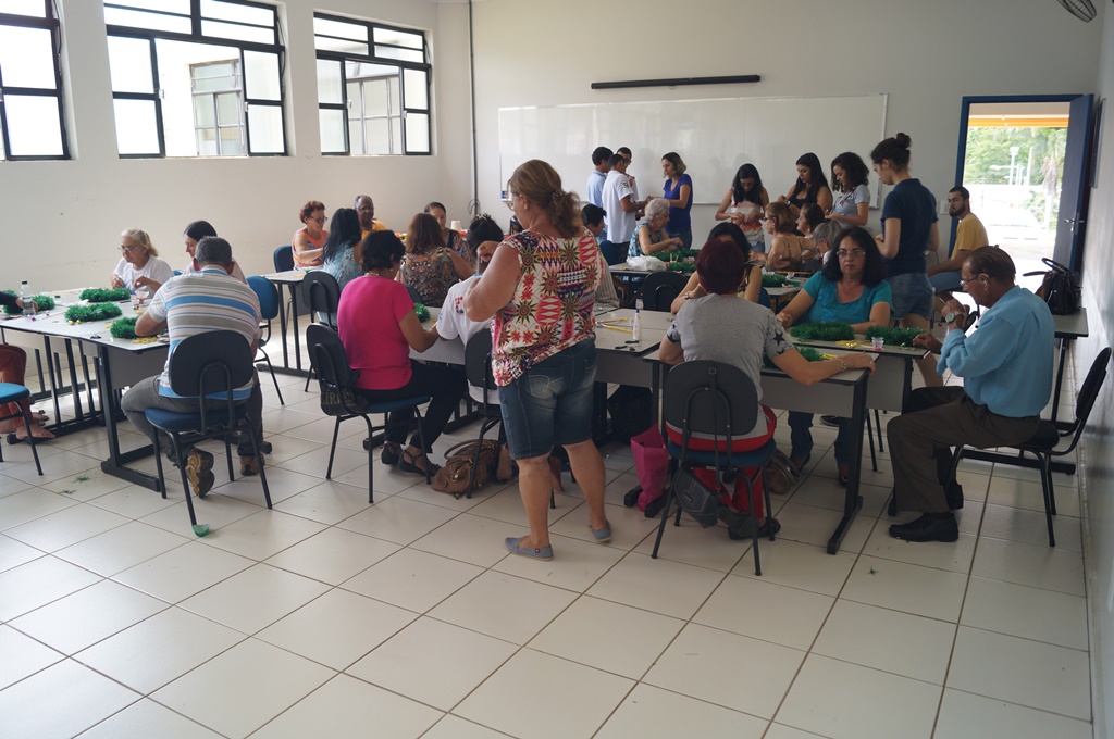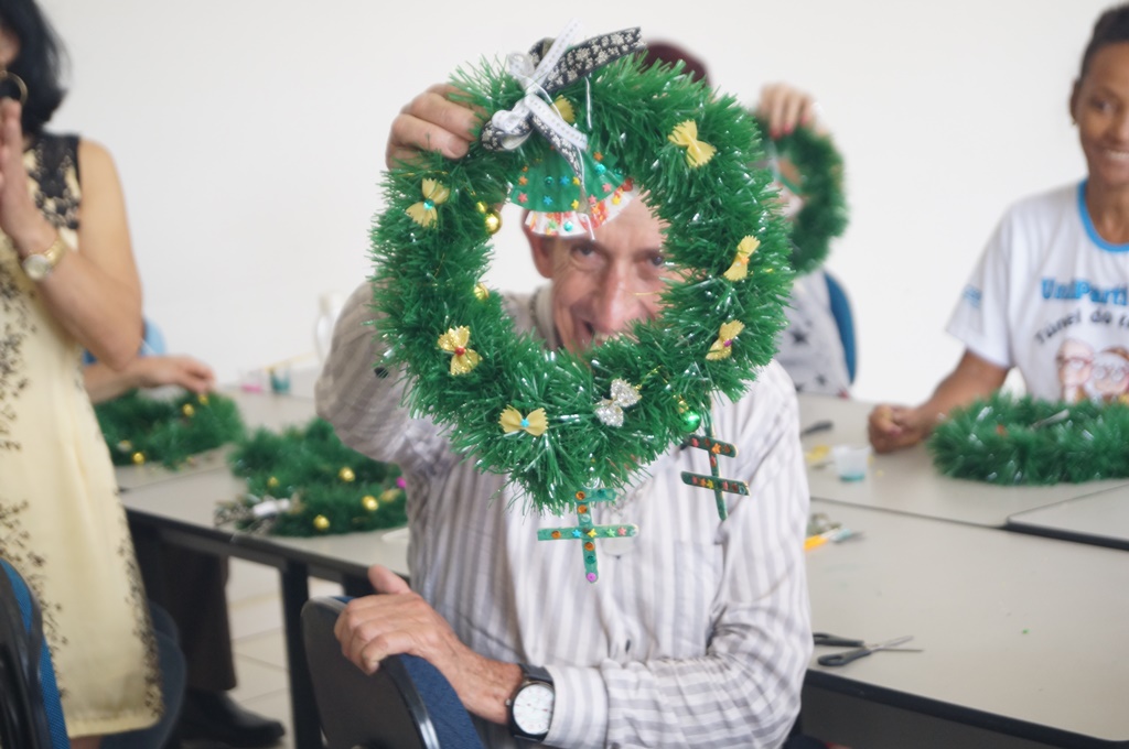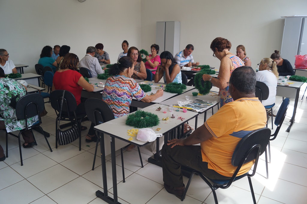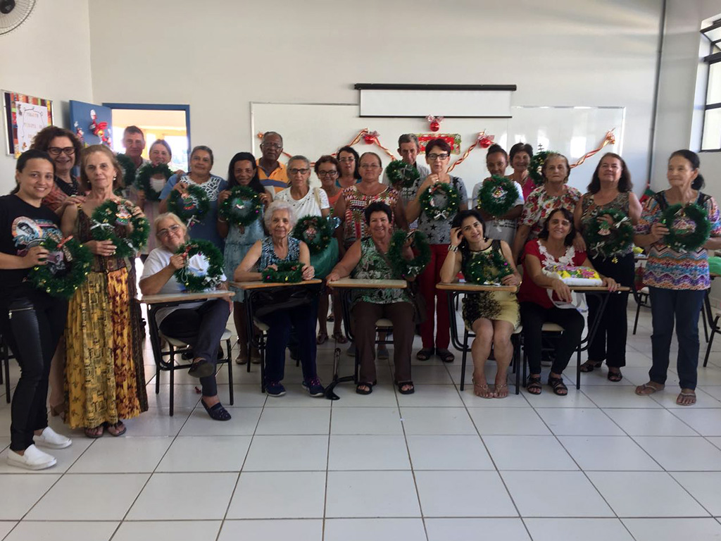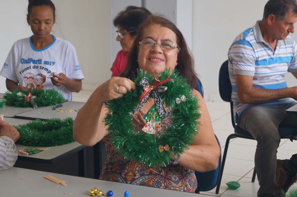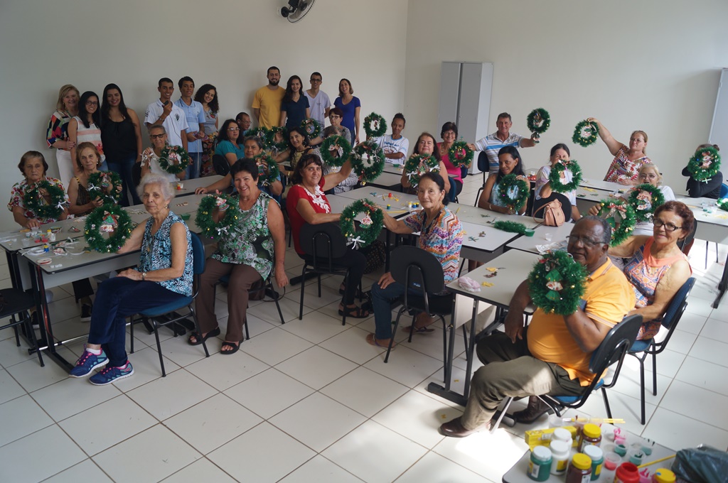 No último sábado, 9, foram encerradas as atividades de 2017 do Projeto UNICERP para a Terceira Idade – UNIPARTI. Os participantes montaram guirlandas natalinas, decoração típica das festas de fim de ano. O trabalho artesanal foi conduzido pelos alunos e pela Profª Michelle Ramos Bernardes Dias Martins, coordenadora dos cursos de Arquitetura e Urbanismo e Design de Interiores.