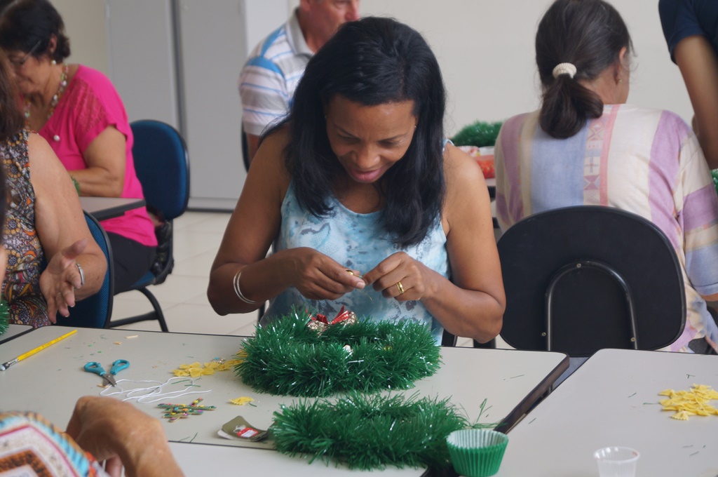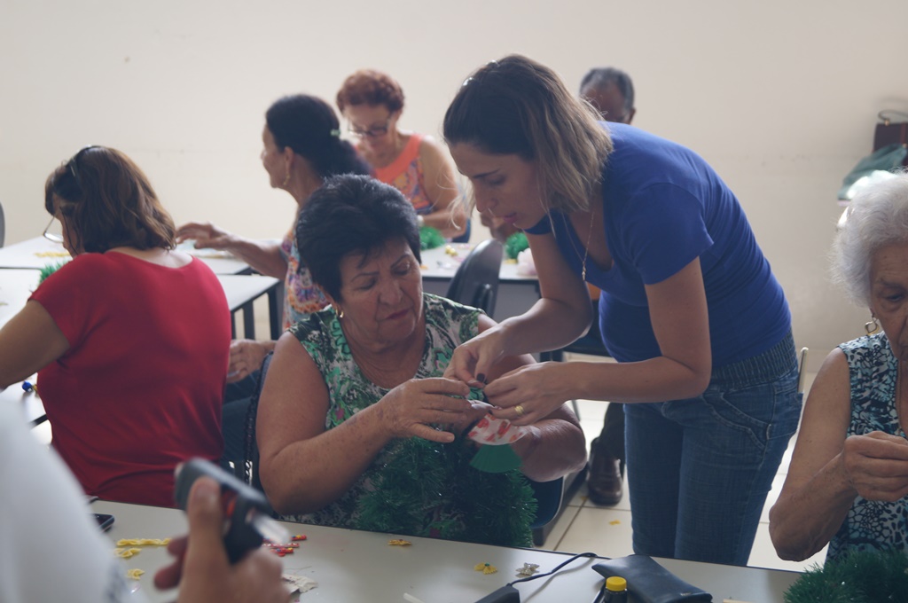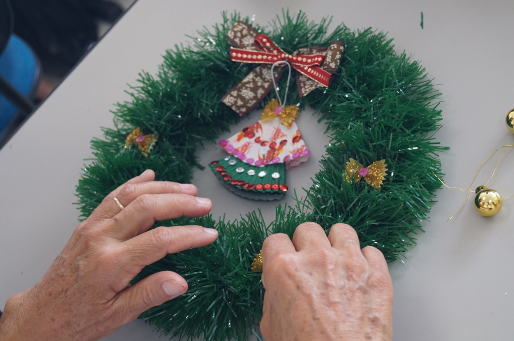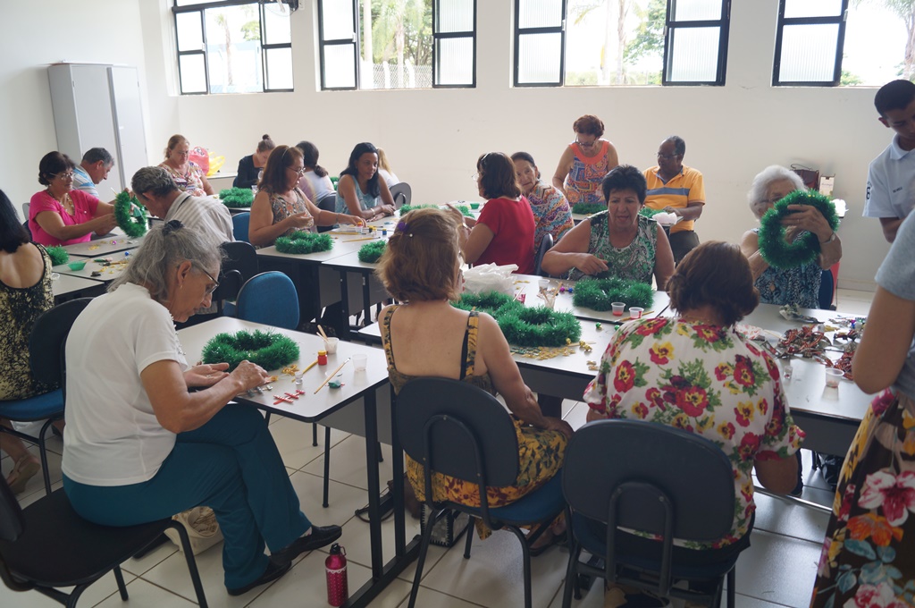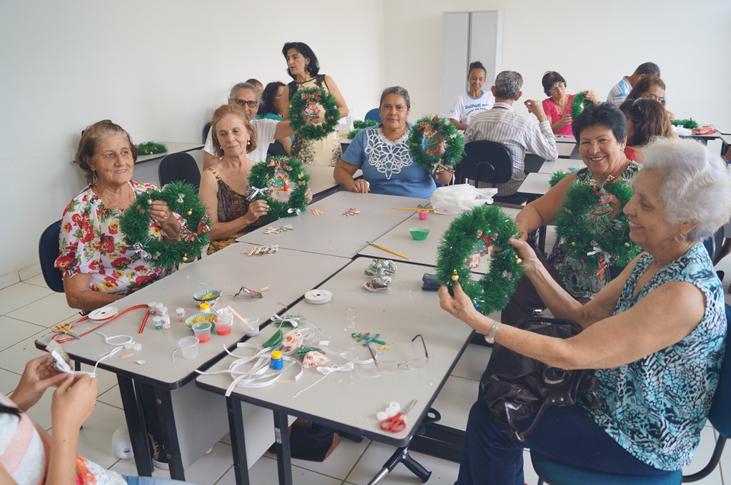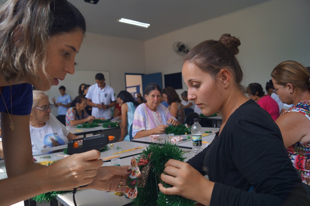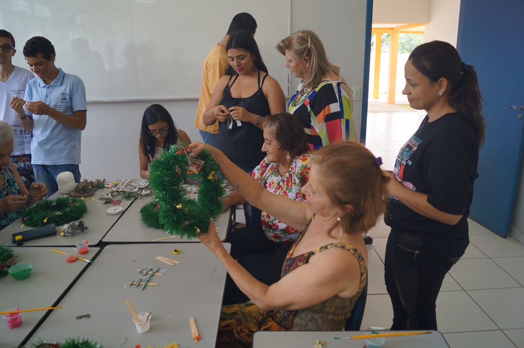 No último sábado, 9, foram encerradas as atividades de 2017 do Projeto UNICERP para a Terceira Idade – UNIPARTI. Os participantes montaram guirlandas natalinas, decoração típica das festas de fim de ano. O trabalho artesanal foi conduzido pelos alunos e pela Profª Michelle Ramos Bernardes Dias Martins, coordenadora dos cursos de Arquitetura e Urbanismo e Design de Interiores.