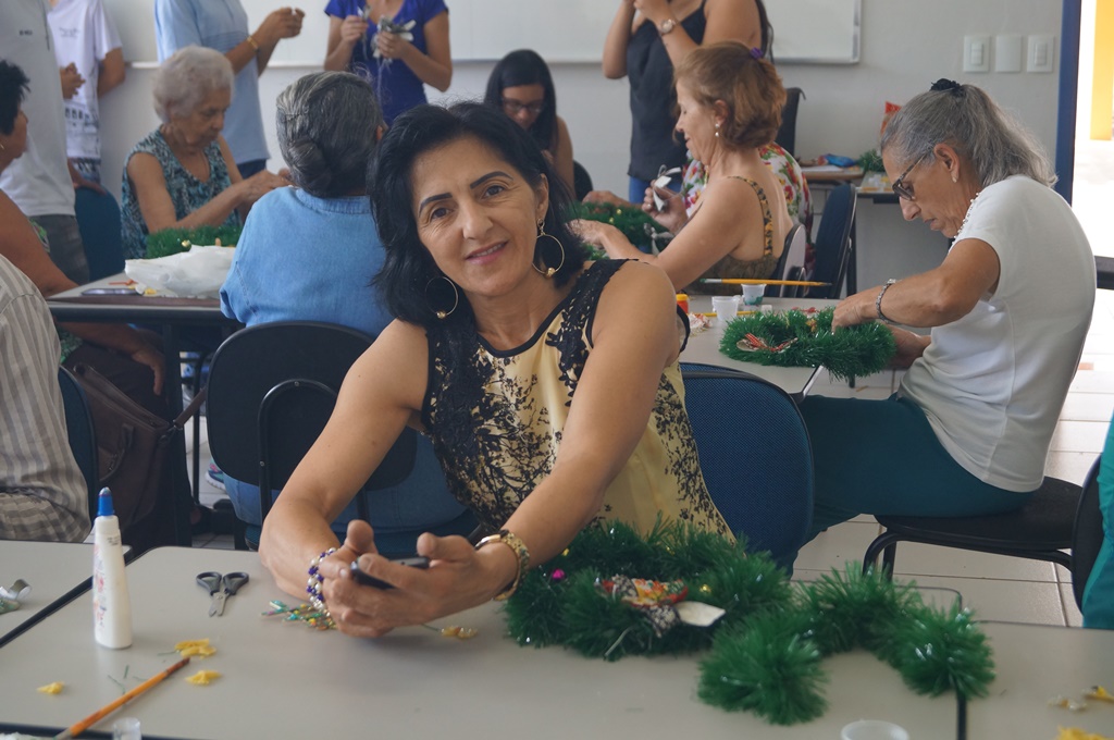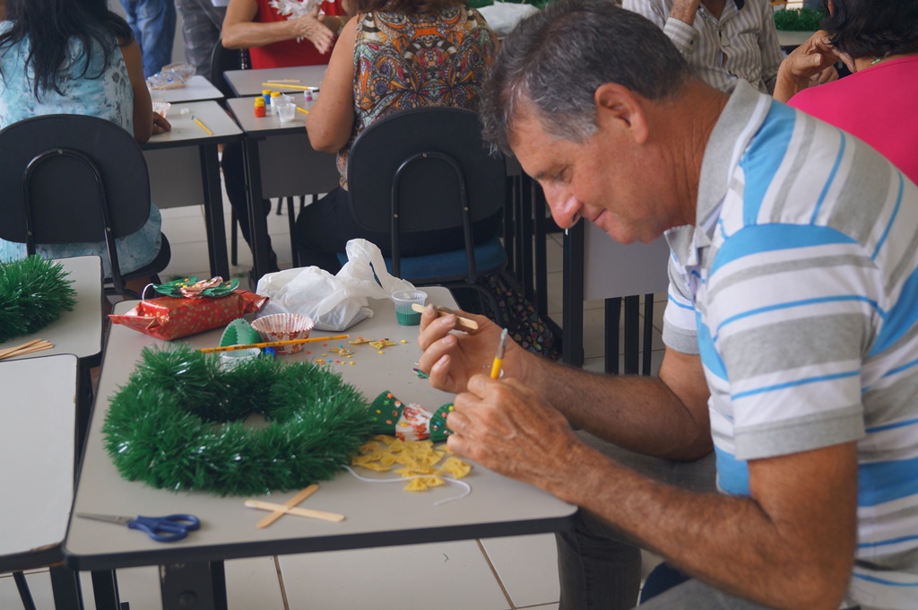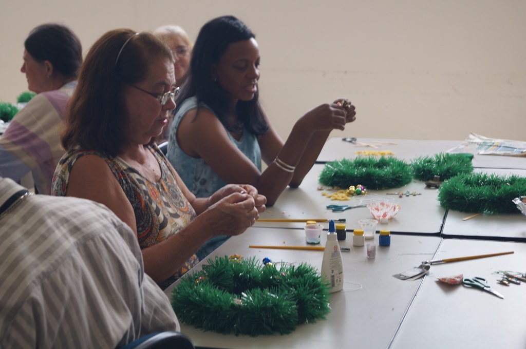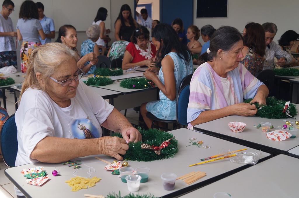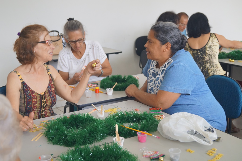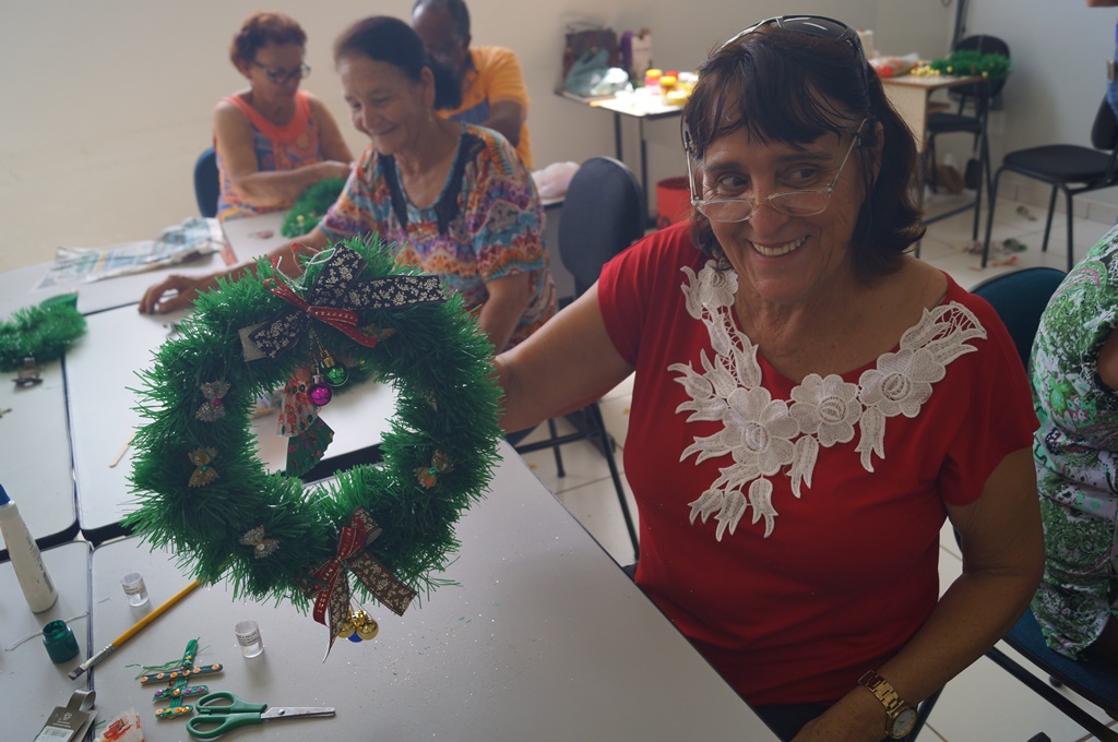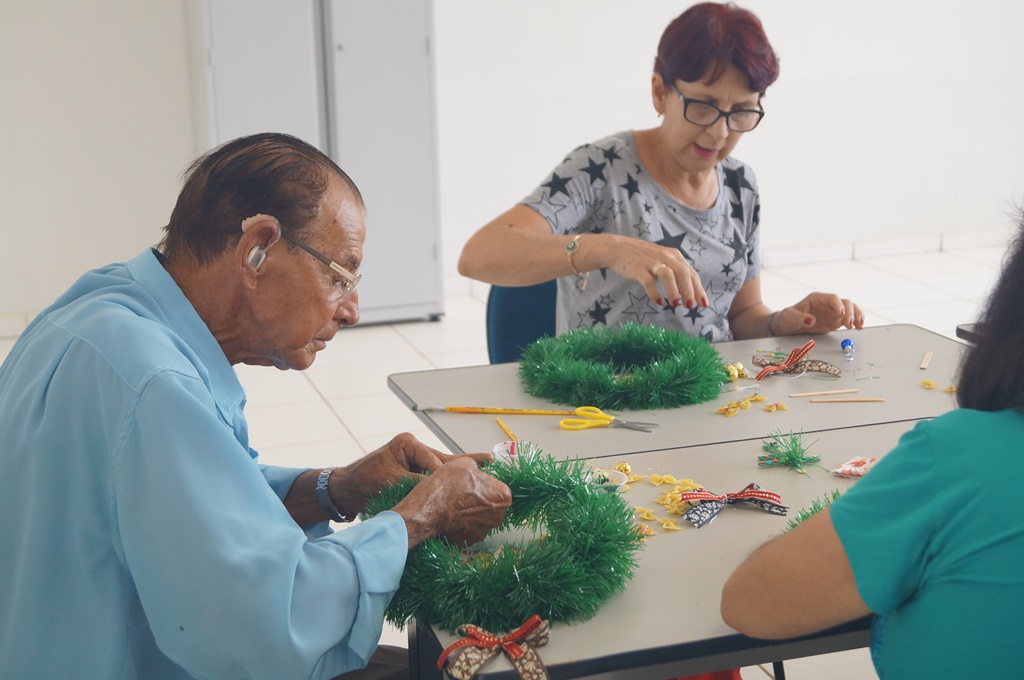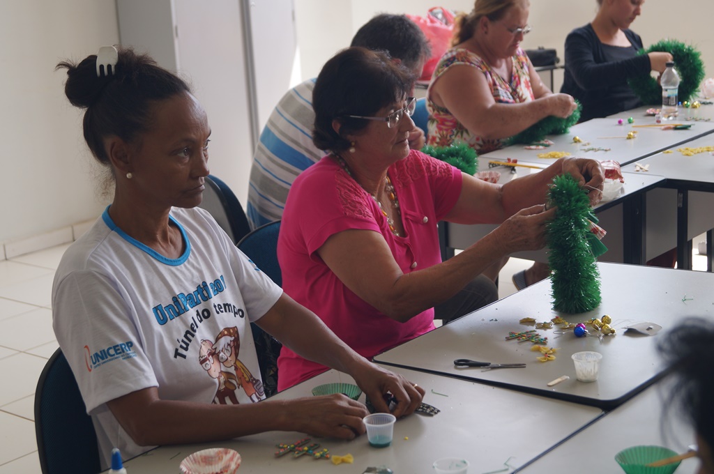 No último sábado, 9, foram encerradas as atividades de 2017 do Projeto UNICERP para a Terceira Idade – UNIPARTI. Os participantes montaram guirlandas natalinas, decoração típica das festas de fim de ano. O trabalho artesanal foi conduzido pelos alunos e pela Profª Michelle Ramos Bernardes Dias Martins, coordenadora dos cursos de Arquitetura e Urbanismo e Design de Interiores.