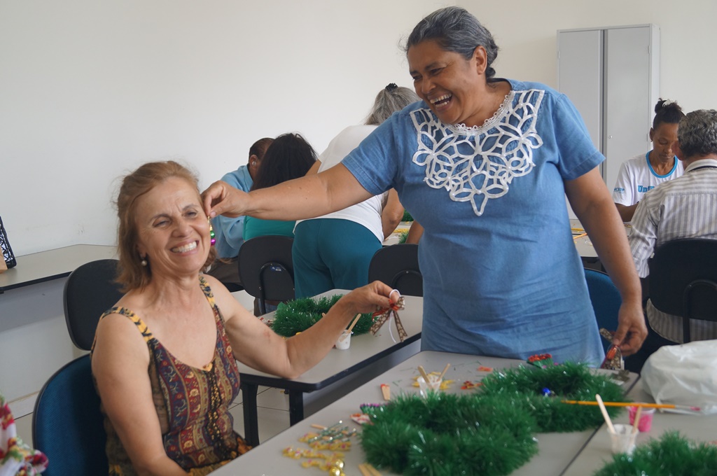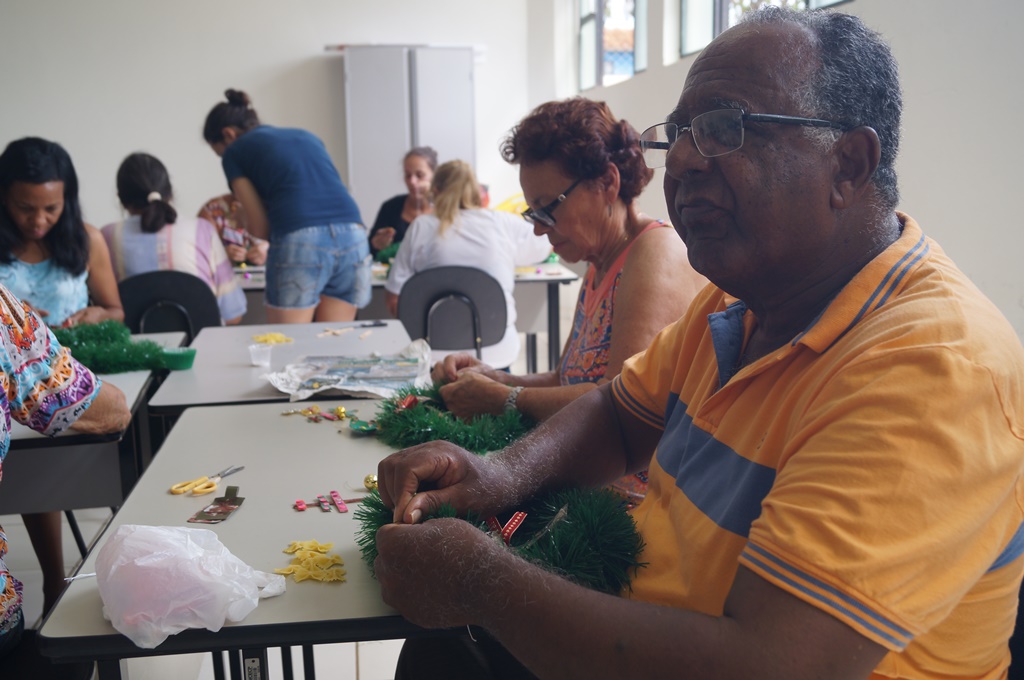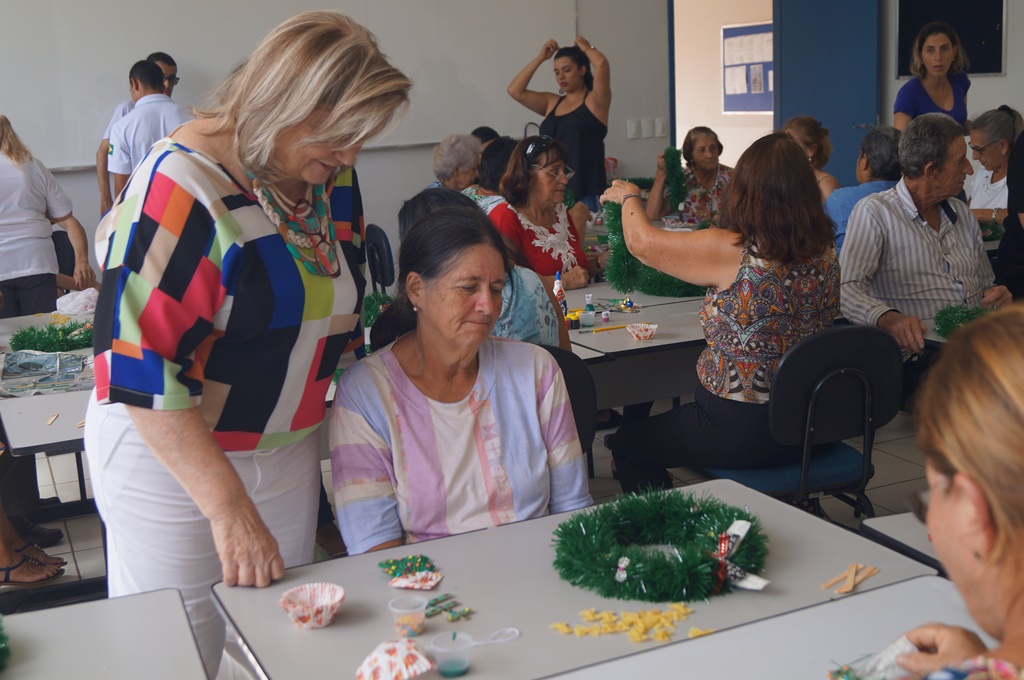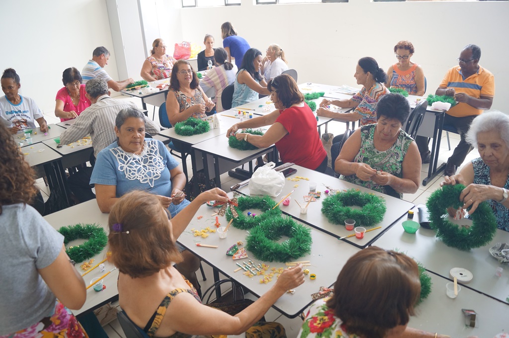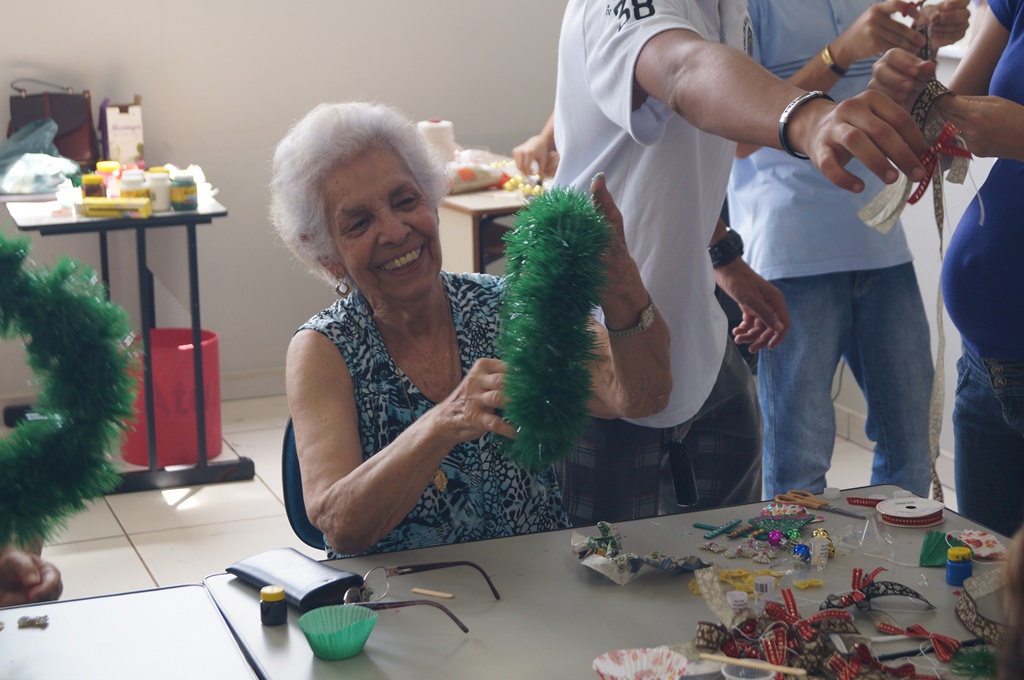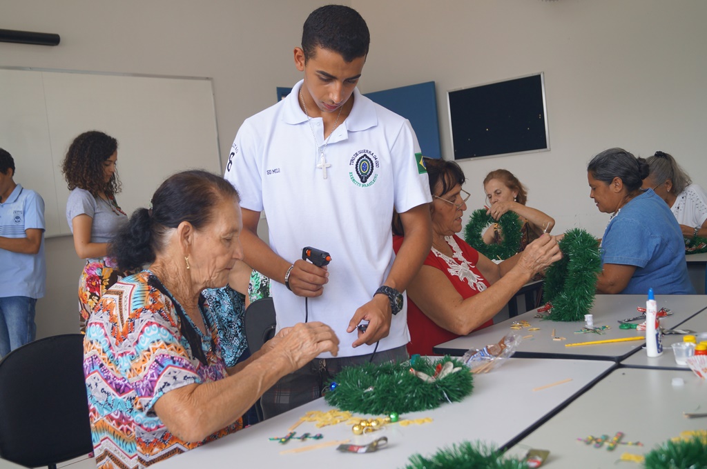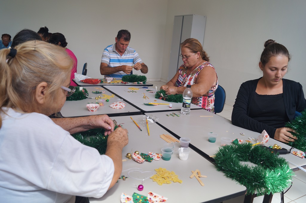 No último sábado, 9, foram encerradas as atividades de 2017 do Projeto UNICERP para a Terceira Idade – UNIPARTI. Os participantes montaram guirlandas natalinas, decoração típica das festas de fim de ano. O trabalho artesanal foi conduzido pelos alunos e pela Profª Michelle Ramos Bernardes Dias Martins, coordenadora dos cursos de Arquitetura e Urbanismo e Design de Interiores.