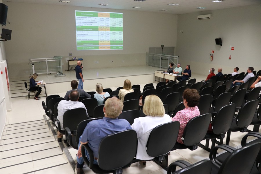 Foram apresentados o Balanço de 2021, DRE (Demonstrativo de Resultado do Exercício), Limite Máximo do Endividamento para 2022 e Fixação dos Valores Globais de Investimento para 2022, sendo todos os itens aprovados pelo Conselho Comunitário.