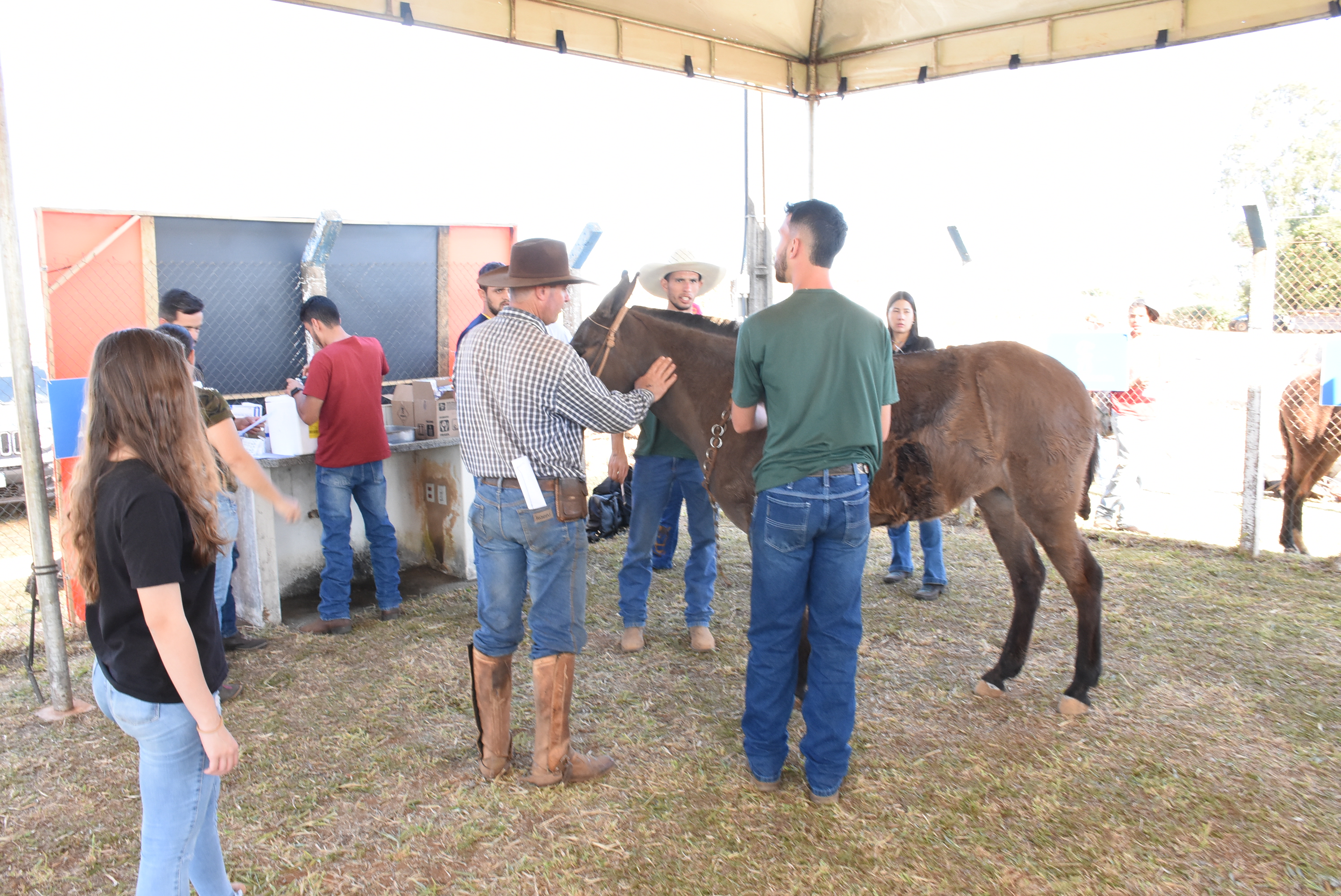 A tarde ficou por conta do projeto “Cavalo de Respeito”. A equipe do Curso de Veterinária atendeu mais 40 casos clínicos, além das vacinações e vermifugações.