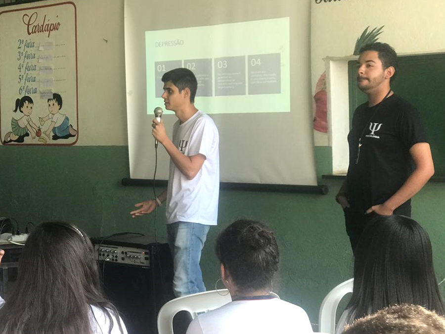 No mês de setembro os alunos do curso de Psicologia do UNICERP apresentaram a palestra “Vamos falar sobre nossos sentimentos”. O tema foi ministrado a alunos do período matutino da Escola Estadual Dalva Stela de Queiroz.