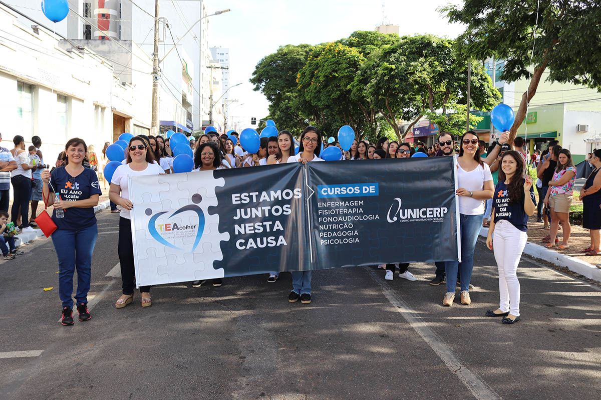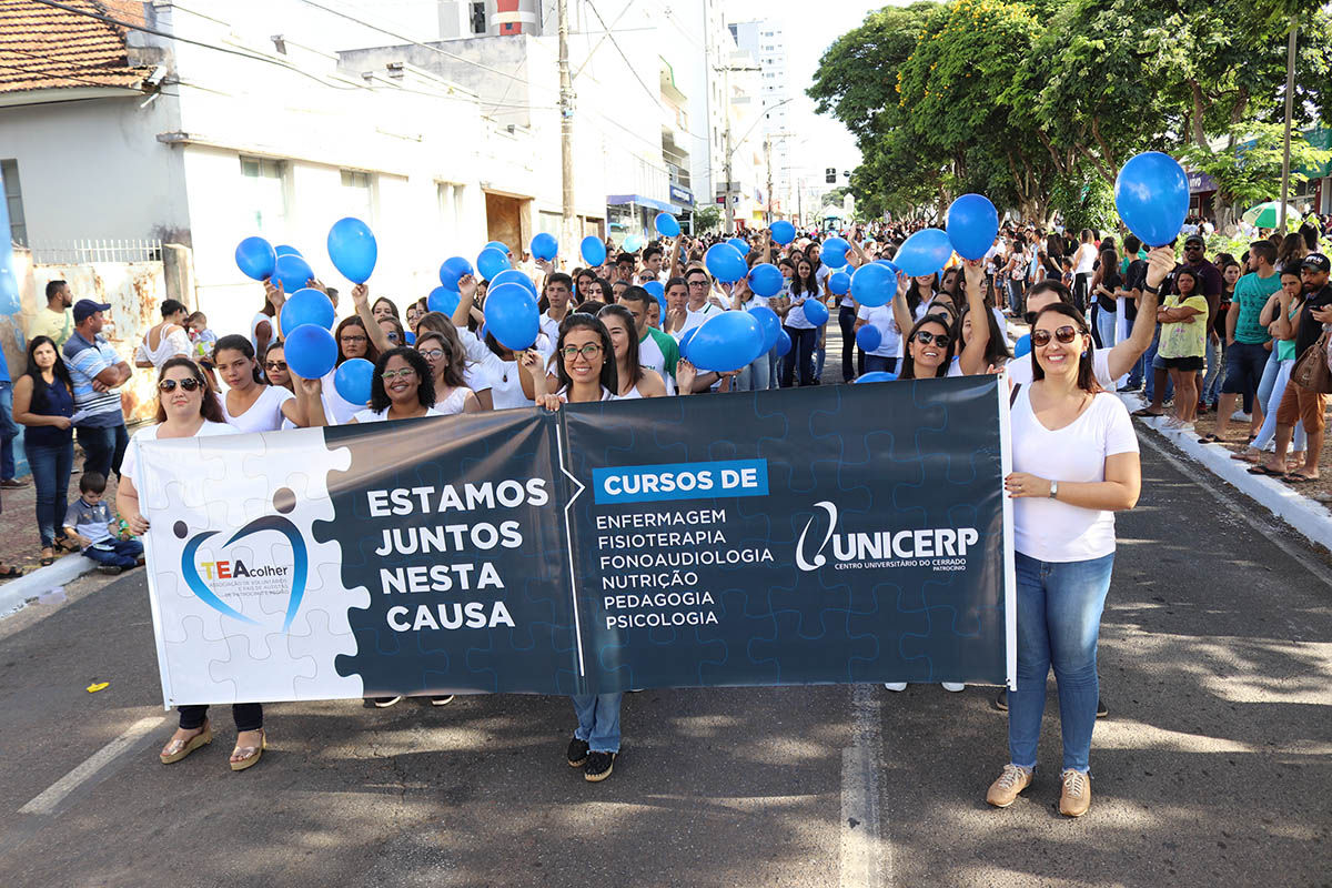 O UNICERP esteve presente, representado por alunos e professores dos cursos de Enfermagem, Fisioterapia, Fonoaudiologia, Nutrição, Pedagogia e Psicologia. Os participantes desfilarem em apoio da causa da TEAcolher – Associação de Pais e Voluntários dos Autistas de Patrocínio e Região.