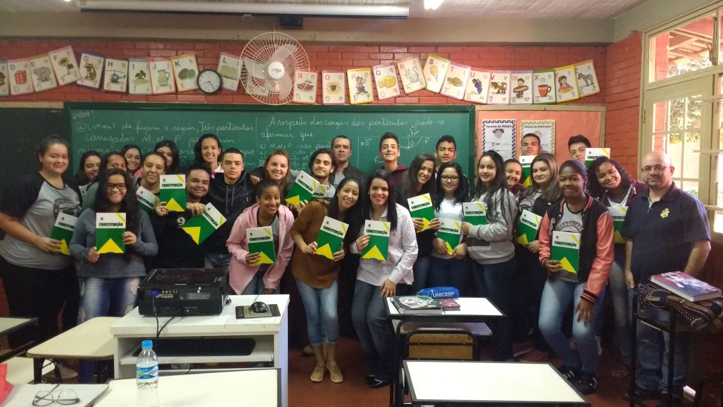 O curso de Direito do Centro Universitário do Cerrado Patrocínio, através do 6º período, está desenvolvendo o projeto de extensão “Constituição e cidadania nas escolas”. Orientados pela Prof.ª Ma. Izabel Rosa Moreira, os estudantes do UNICERP trabalham junto aos alunos do 3º ano do Ensino Médio, levando conhecimentos básicos sobre pontos importantes da Constituição Federal.