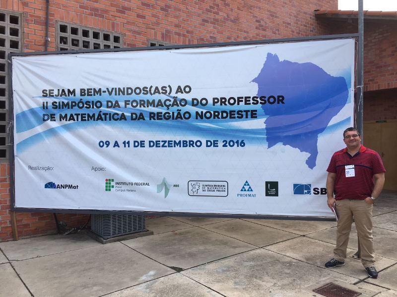 O docente do UNICERP Prof. Me. Sérgio Augusto Amaral Lopes esteve presente no 2º Simpósio da Formação do Professor de Matemática da Região Nordeste. O evento foi promovido pela SBM (Sociedade Brasileira de Matemática) e ANPMAT (Associação Nacional dos Professores de Matemática), entre outras instituições acadêmicas. O encontro aconteceu de 9 a 11 de dezembro de 2016 no Instituto Federal do Piauí, em Floriano/PI.