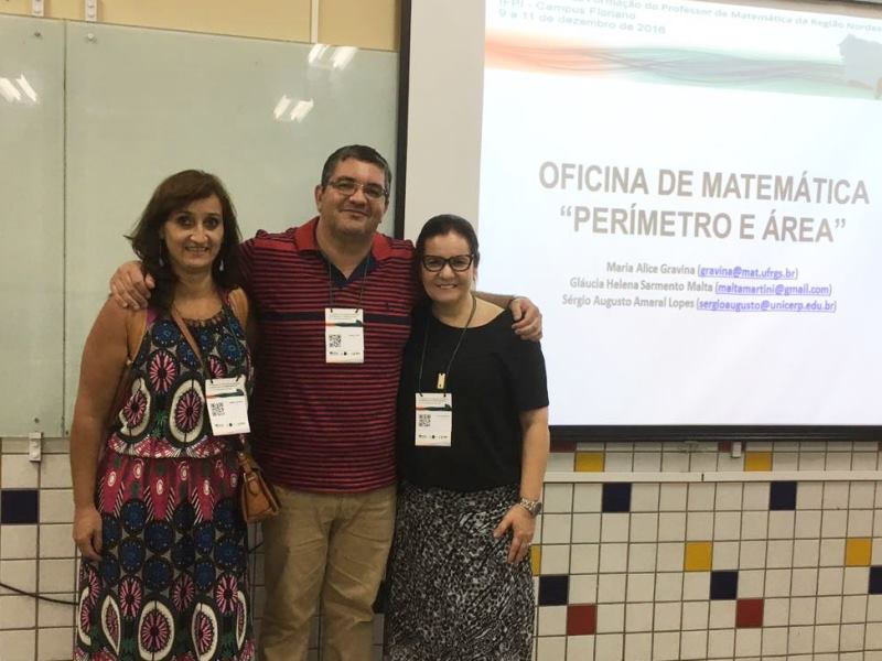 O professor do UNICERP também ministrou o minicurso “Perímetro e área”, em parceria com a Profª Drª. Maria Alice Gravina, da Universidade Federal do Rio Grande do Sul. A atividade trabalhou os dois conceitos em diferentes níveis de escolaridade, integrando aritmética, álgebra e geometria. O trabalho Perímetro e área originará um e-book do mesmo nome, que ficará disponível no site da SBM.
