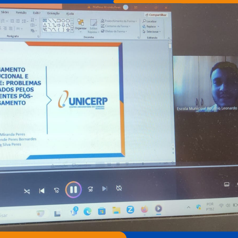 Mais uma rodada da palestras foi realizada para os estudantes do curso de Direito do Unicerp. Impossibilitado de estar presente pessoalmente, o egresso do Unicerp, Matheus Miranda Peres, falou de forma virtual para os alunos do 1º período do curso sobre Desligamento Institucional: problemas enfrentados pelos adolescentes pós-desligamento.