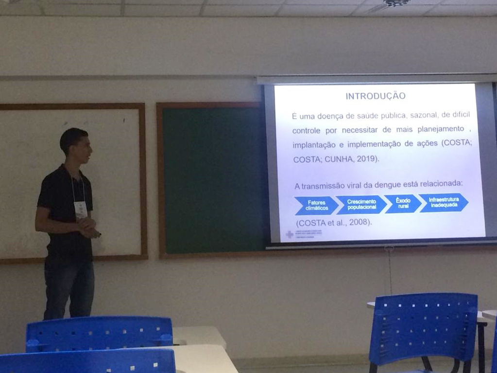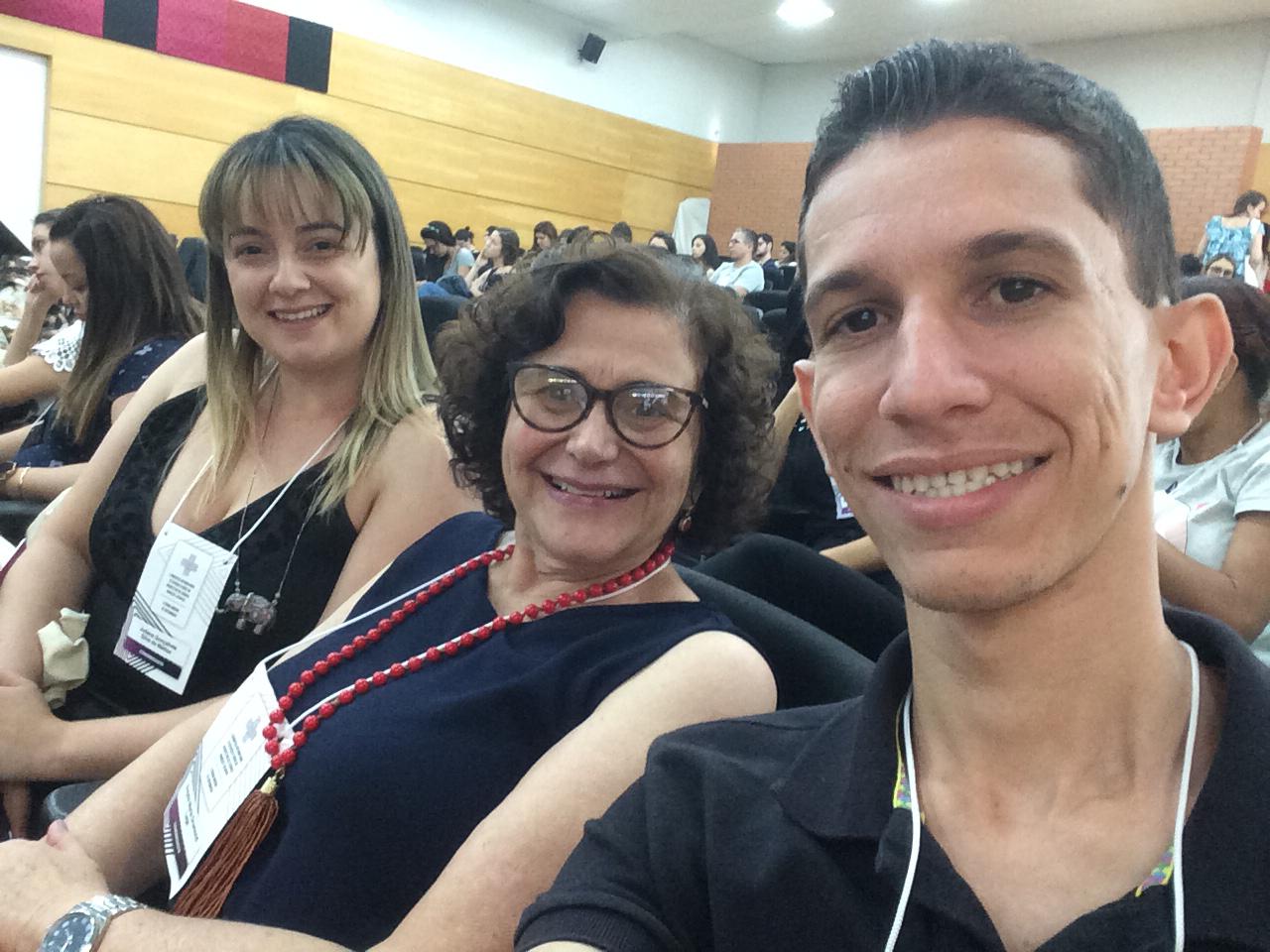 O aluno Ricardo Augusto Brito de Sousa e as professoras Me. Juliana Goncalves Silva Mattos e Me. Angela Maria Drumond Lage, coordenadora do curso de Enfermagem do UNICERP, explanaram sobre “Análise temporal de casos prováveis de Dengue em um município mineiro”.