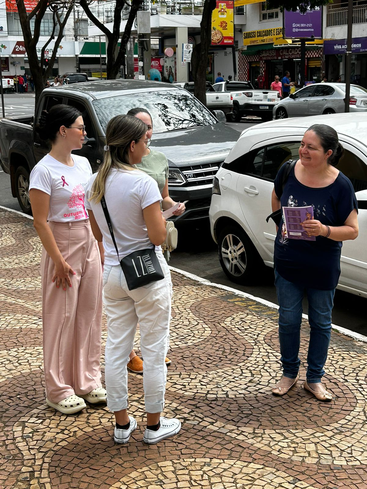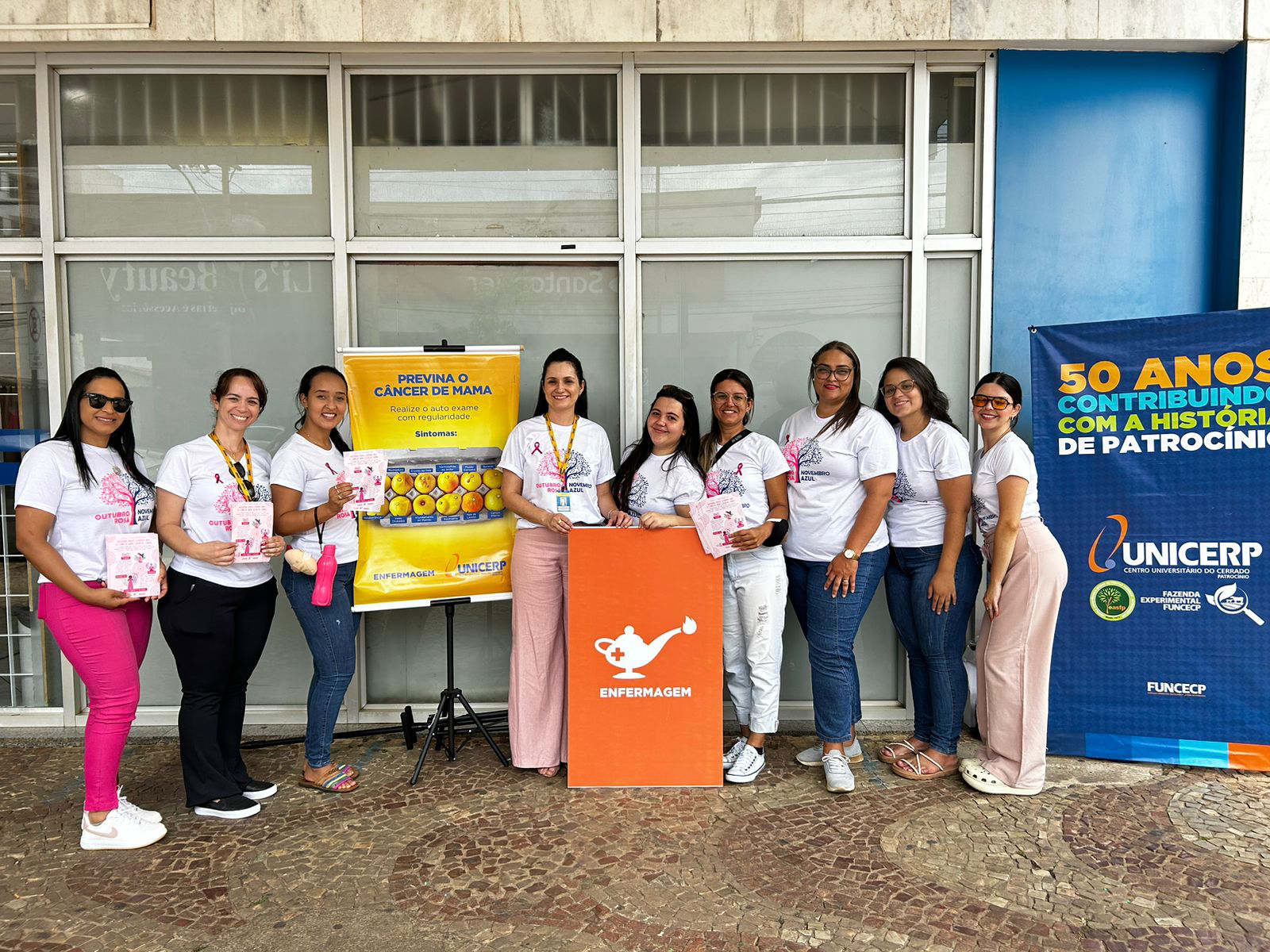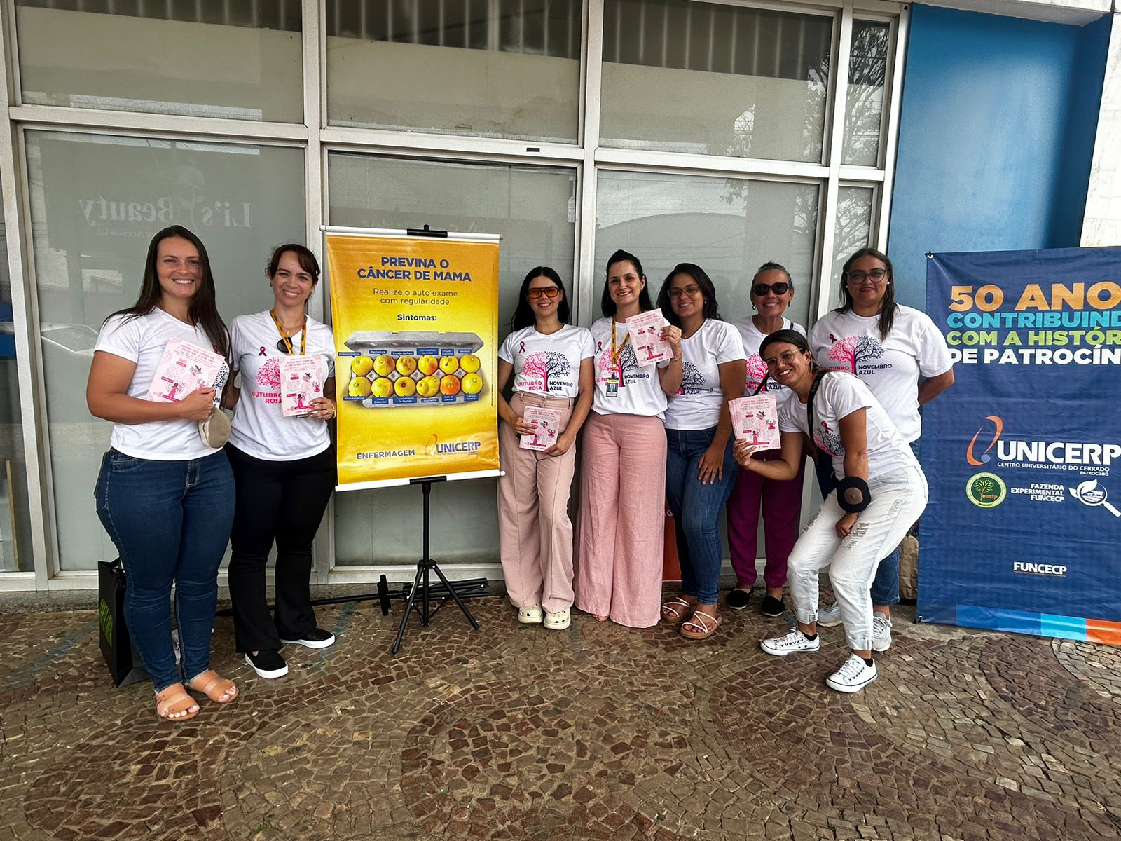 Professores e alunos do Curso de Enfermagem estiveram no Centro de Patrocínio, neste sábado (7), levando informações importantes de conscientização e combate ao Câncer de Mama.