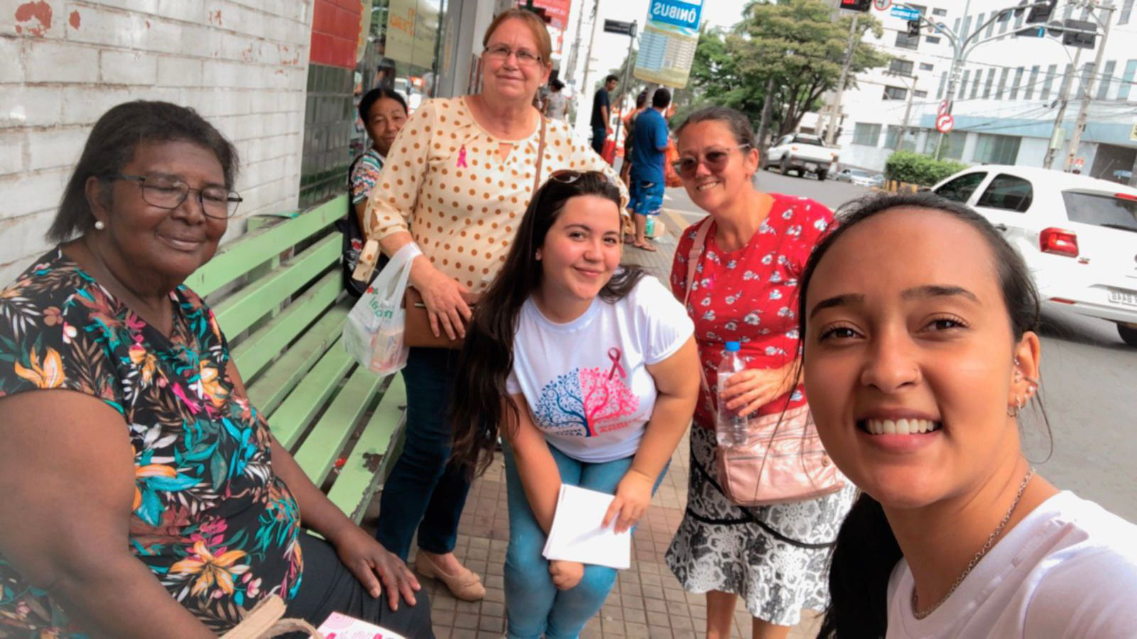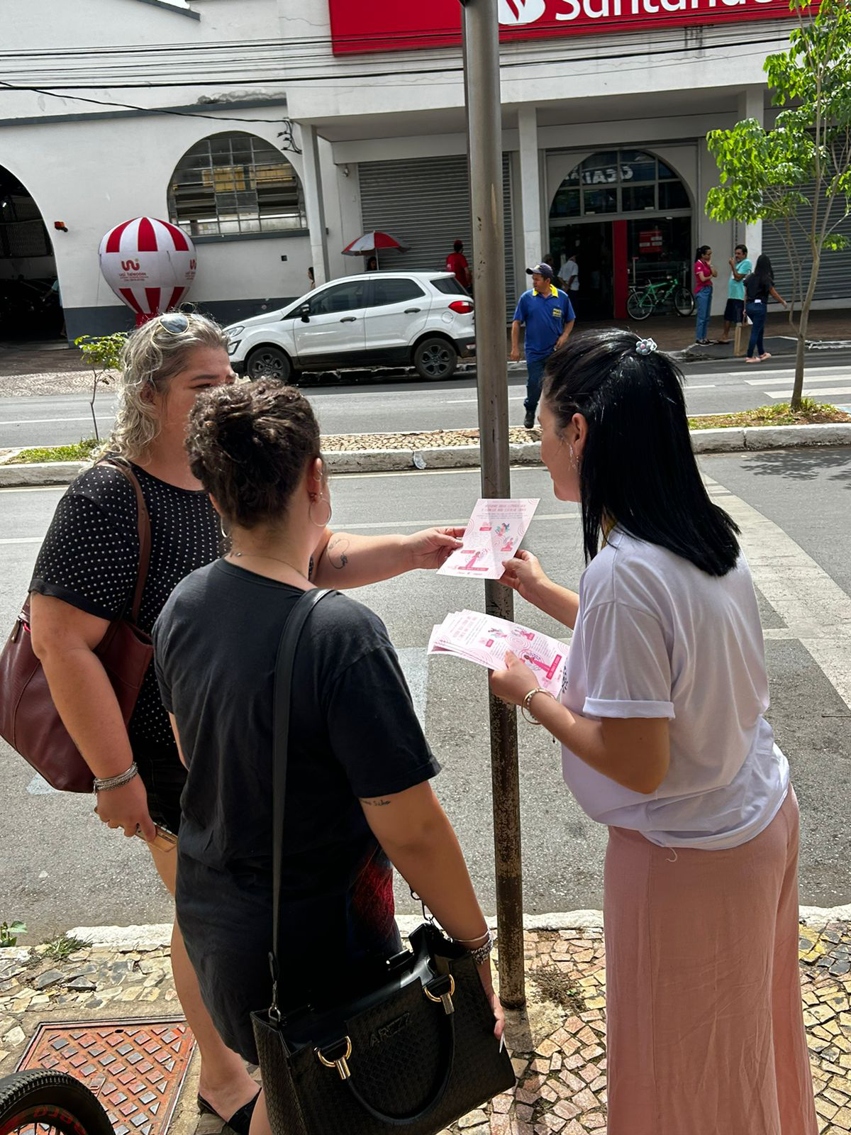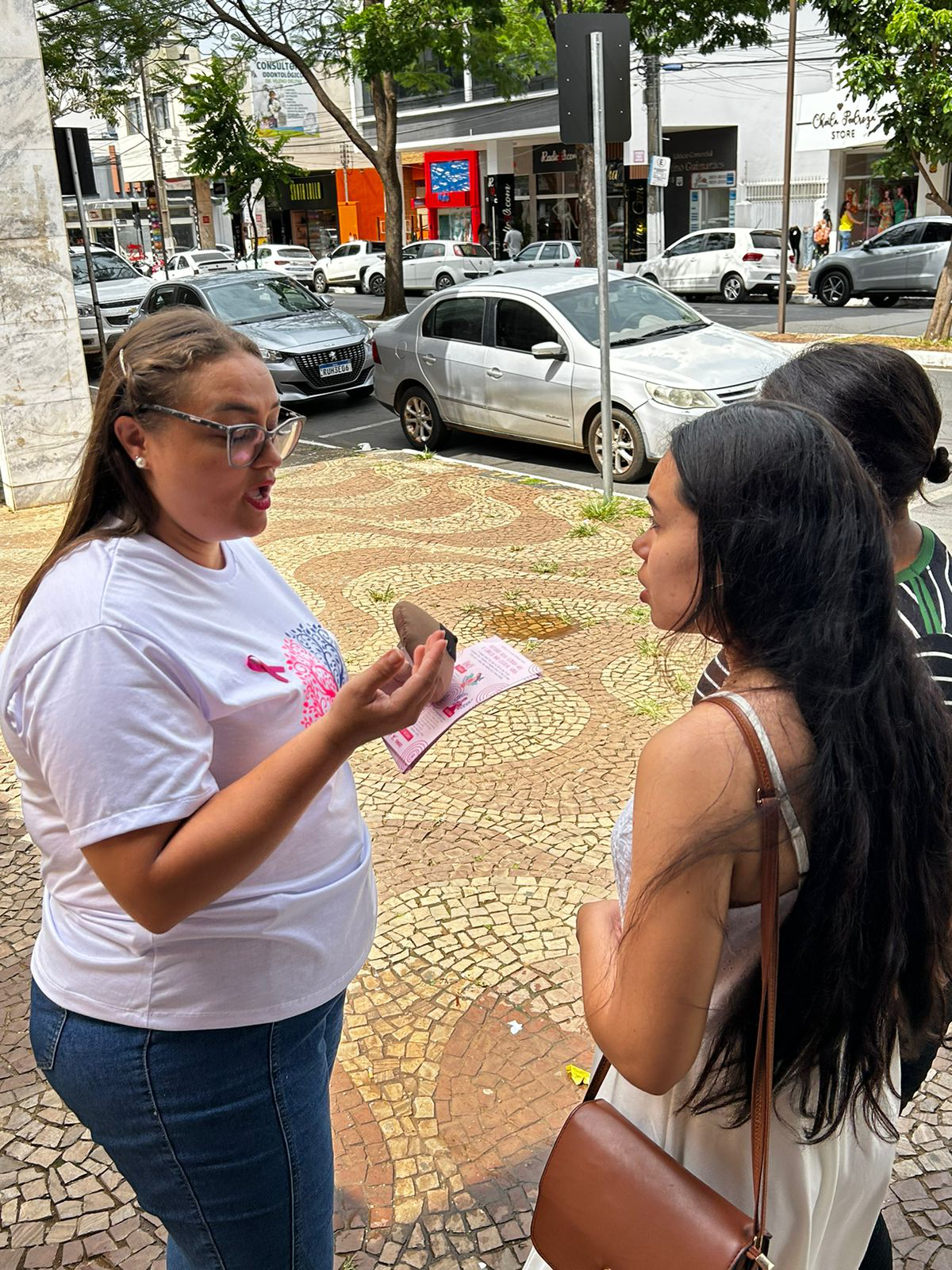 Professores e alunos do Curso de Enfermagem estiveram no Centro de Patrocínio, neste sábado (7), levando informações importantes de conscientização e combate ao Câncer de Mama.