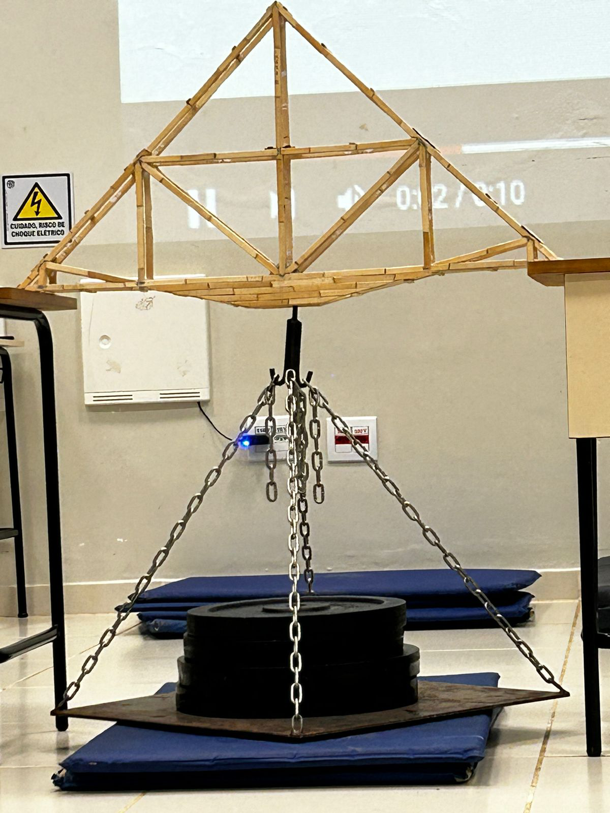 As demais pontes inscritas no concurso suportaram as seguintes cargas: "Amizade” (34,25kg), "Triangulo” (39,25kg) e "Gertrudes” (carga suportada 79,25kg).