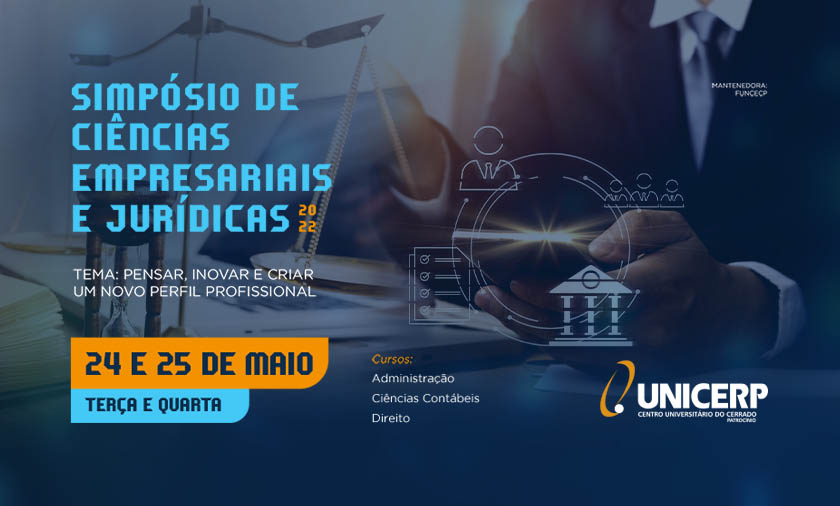 Estão abertas as inscrições para o Simpósio de Ciências Empresariais e Jurídicas 2022 do UNICERP. O evento é uma realização dos cursos de Administração, Ciências Contábeis e Direito do Centro Universitário do Cerrado Patrocínio.