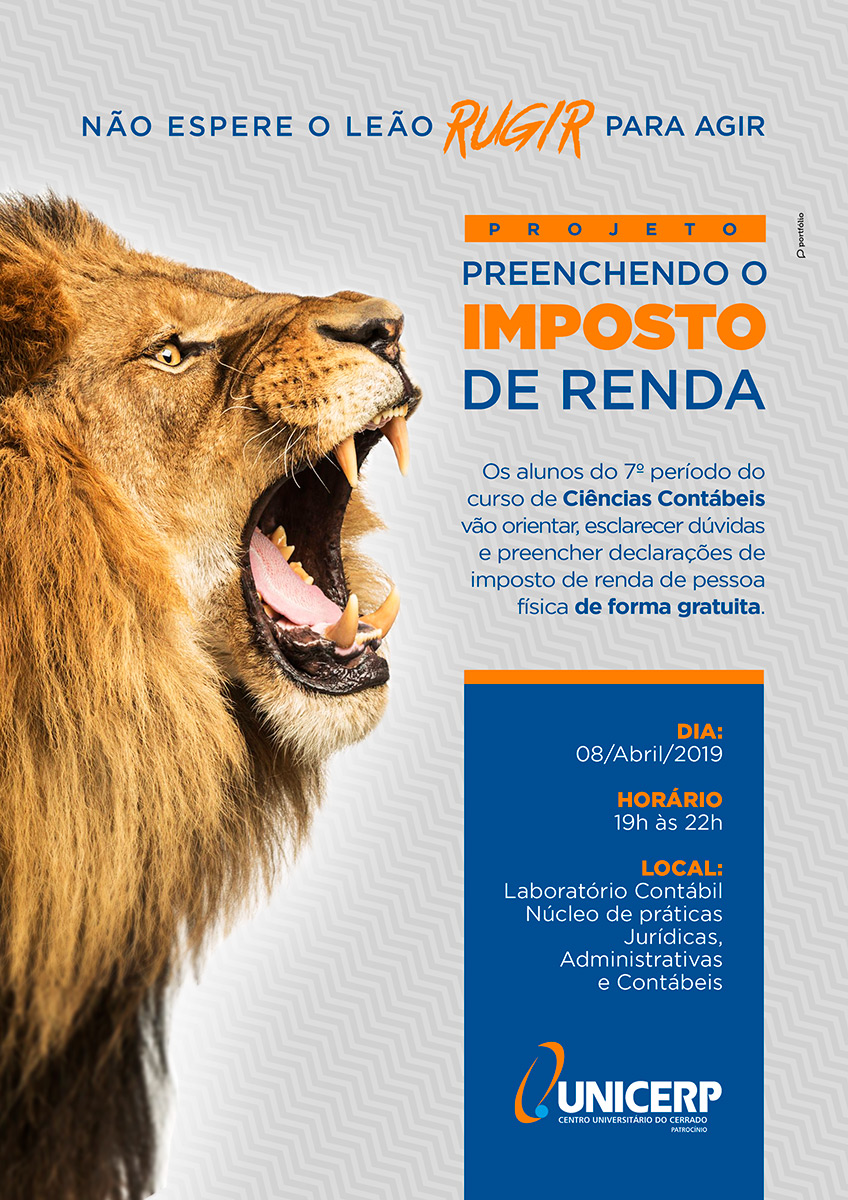 No dia 8 de abril, das 19h às 22h, os alunos do 7º período do curso de Ciências Contábeis do Centro Universitário do Cerrado Patrocínio (UNICERP) realizarão o projeto “Preenchendo o Imposto de Renda”.