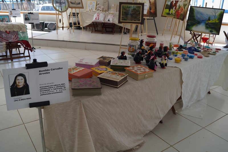 Nos dias 05 e 06 de abril o UNICERP Cultural apresentou a exposição “Nossa arte”. O acervo mostrou obras de seis artistas locais, Ângela Arvelos Ferreira, Camila Faria, Ivete Bocate Urbano, Maria Lúcia de Oliveira Reis, Mariinha e Ronilda Carvalho Arvelos. A peças foram expostas na Praça de Alimentação do Centro Universitário do Cerrado de Patrocínio. A “Nossa arte” também celebrou o aniversário de 174 anos Patrocínio, comemorado em 07 de abril. A exposição foi organizada por Flávio Arvelos, coordenador de Serviços Culturais do UNICERP.