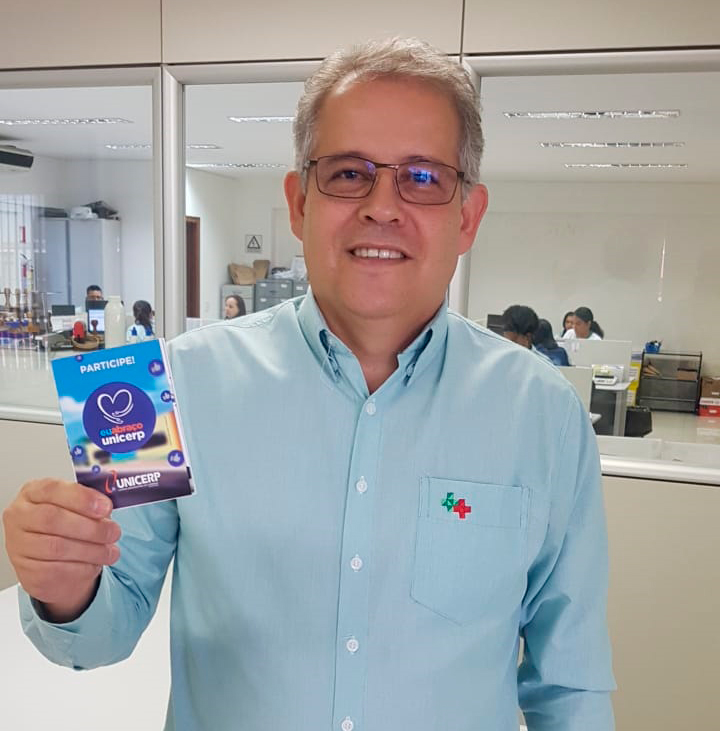 Faça como a equipe da Farmácia Nacional, participe da campanha Eu Abraço o UNICERP.