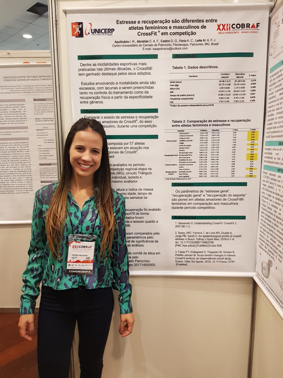 - Estresse e recuperação são diferentes entre atletas femininas e masculinos de CrossFit em competição (apresentado pela aluna Isadora Resende Apolinário, com orientação do Prof. Me. Marco Aurélio Ferreira de Jesus Leite);