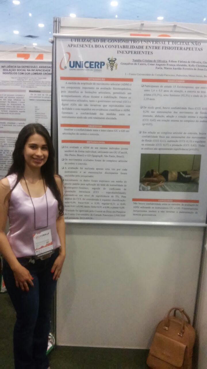 - Utilização de goniômetro universal e digital não apresenta boa confiabilidade entre fisioterapeutas inexperientes (apresentado pela aluna Natália Cristina de Oliveira, com orientação da Prof.ª Ma. Kelly Christina Faria).
