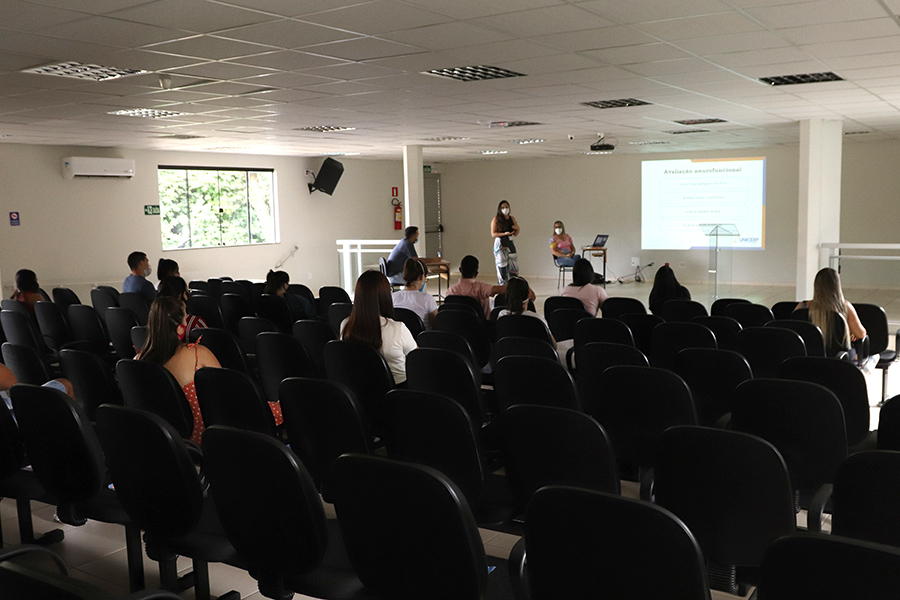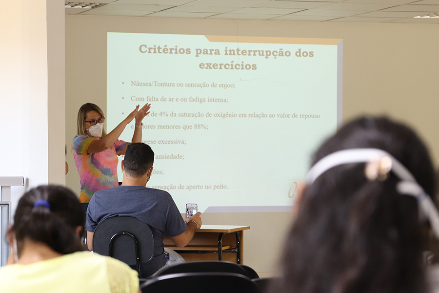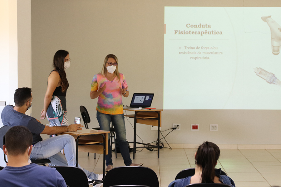 O curso de Fisioterapia do UNICERP promoveu, na última terça-feira, uma palestra* sobre os cuidados com pacientes que se encontram na reabilitação após a contaminação pelo COVID e também sobre o projeto que realiza atendimentos nesse sentido pela Clínica de Saúde da instituição. A palestra aconteceu no Auditório I do Centro Universitário e foi ministrado pela supervisora de estágio do curso de Fisioterapia, Adriana Nunes de Oliveira, e pela aluna do 10° período, Bruna França de Castro.