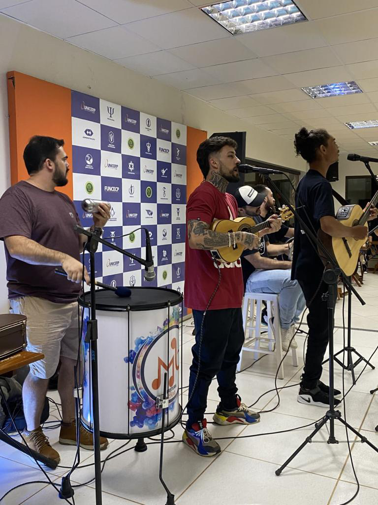 A banda se apresentou para mais de 100 alunos e funcionários da instituição, durante o intervalo da aula, na praça de alimentação do Unicerp.